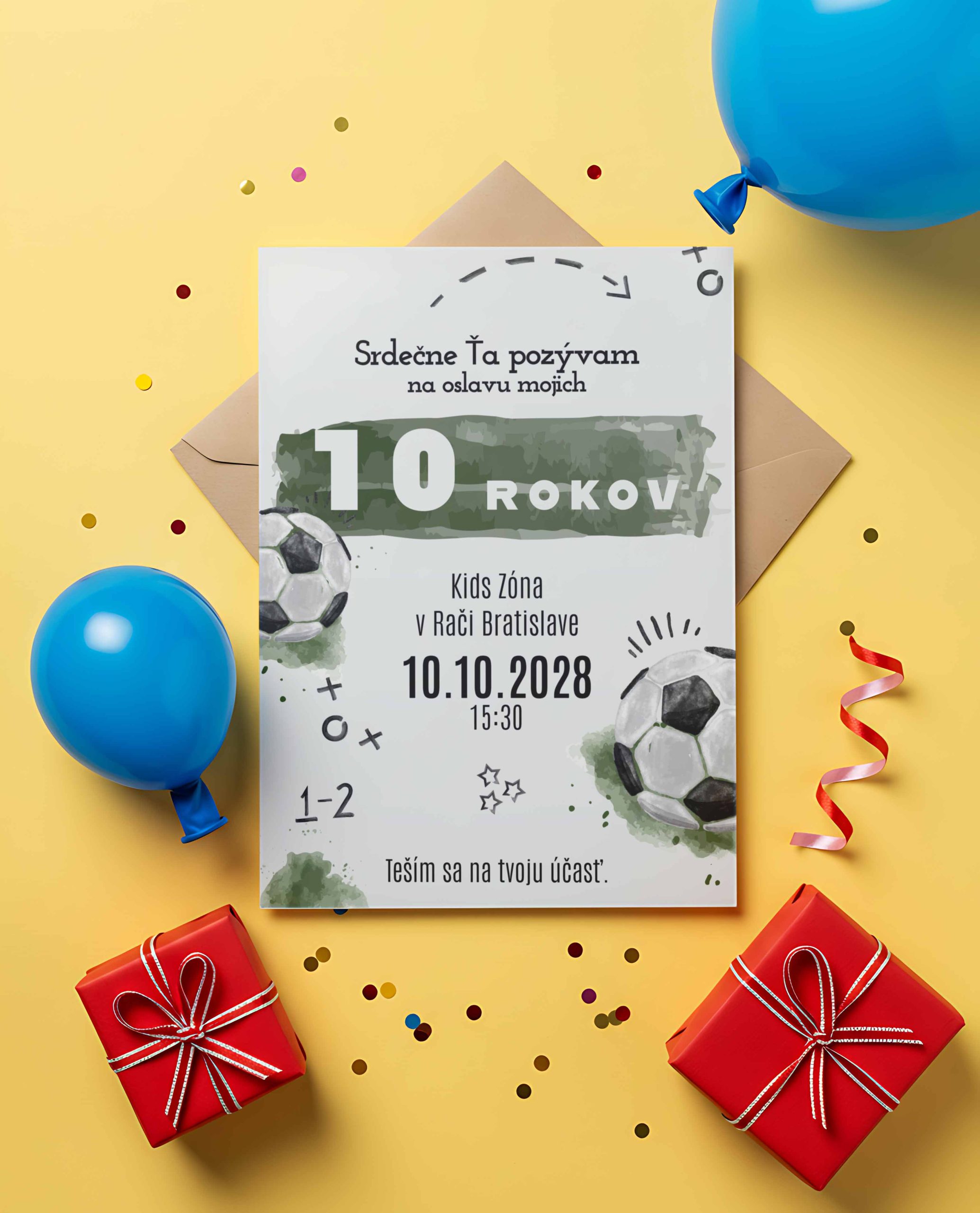 Pozvánka na dětskou oslavu Fotbal – Stylová fotbalová pozvánka. Personalizace zdarma, návrh do 24 hod a dodání do 3 dní.