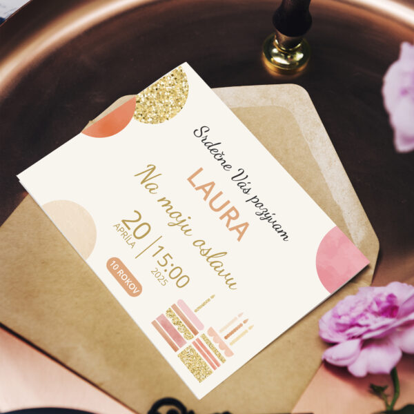 Každá pozvánka na narozeniny je dostupná ve třech oblíbených formátech: klasický A6 (14 × 10 cm) ideální do poštovní obálky, elegantní DL (20 × 10 cm) pro luxusnější vzhled a čtvercový formát (14 × 14 cm), který zaujme na první pohled. Vybraný formát doladíme s vámi tak, aby odpovídal stylu i obsahu pozvánky.