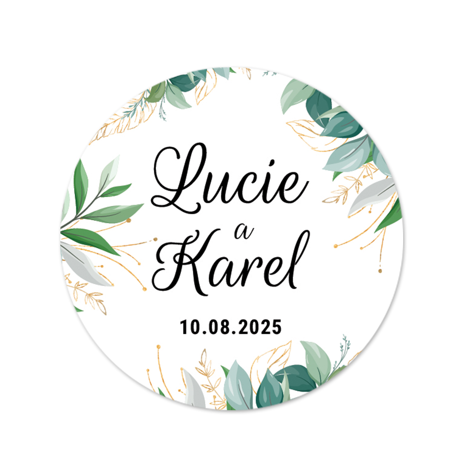Samolepka je dostupná v různých velikostech a designových motivech, včetně personalizovaných nápisů, iniciál či svatebního data, což ji činí ideálním suvenýrem nebo detailním doplňkem vaší svatby. Elegantní kruhový tvar a jemné vzory dodají každé dekoraci styl a šmrnc, což umocní slavnostní atmosféru vašeho dne.