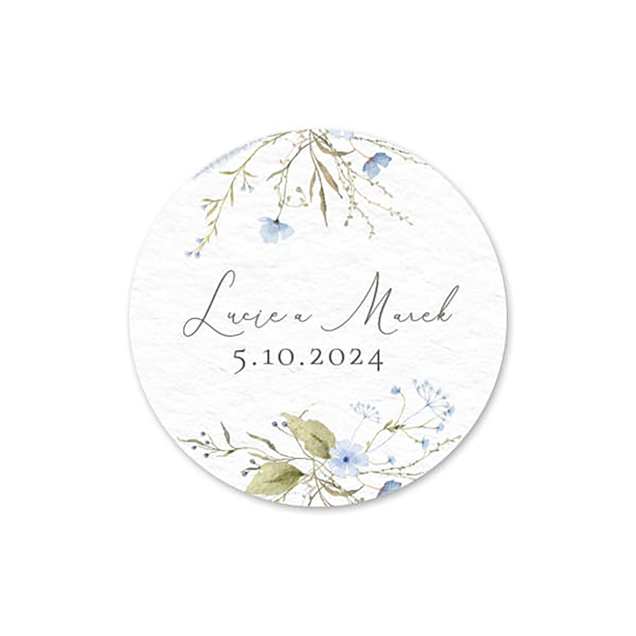 Samolepka je dostupná v různých velikostech a designových motivech, včetně personalizovaných nápisů, iniciál či svatebního data, což ji činí ideálním suvenýrem nebo detailním doplňkem vaší svatby. Elegantní kruhový tvar a jemné vzory dodají každé dekoraci styl a šmrnc, což umocní slavnostní atmosféru vašeho dne.