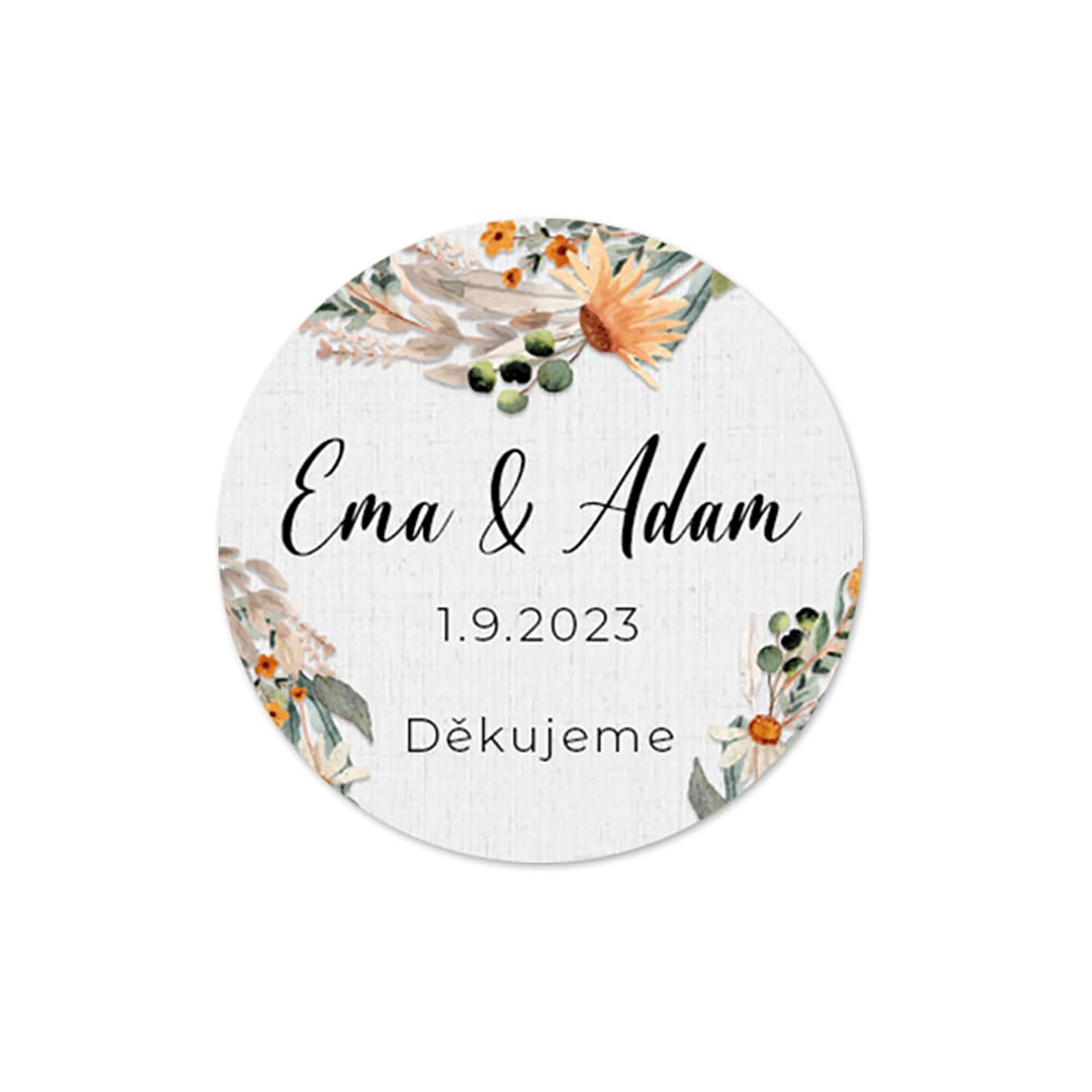 Kulatá svatební samolepka je elegantním a originálním doplňkem pro vaši svatební výzdobu nebo pozvánky. Vyrobená z kvalitního samolepícího materiálu, snadno se aplikuje na různé povrchy jako obálky, svatební dary, sklenice nebo dekorace.