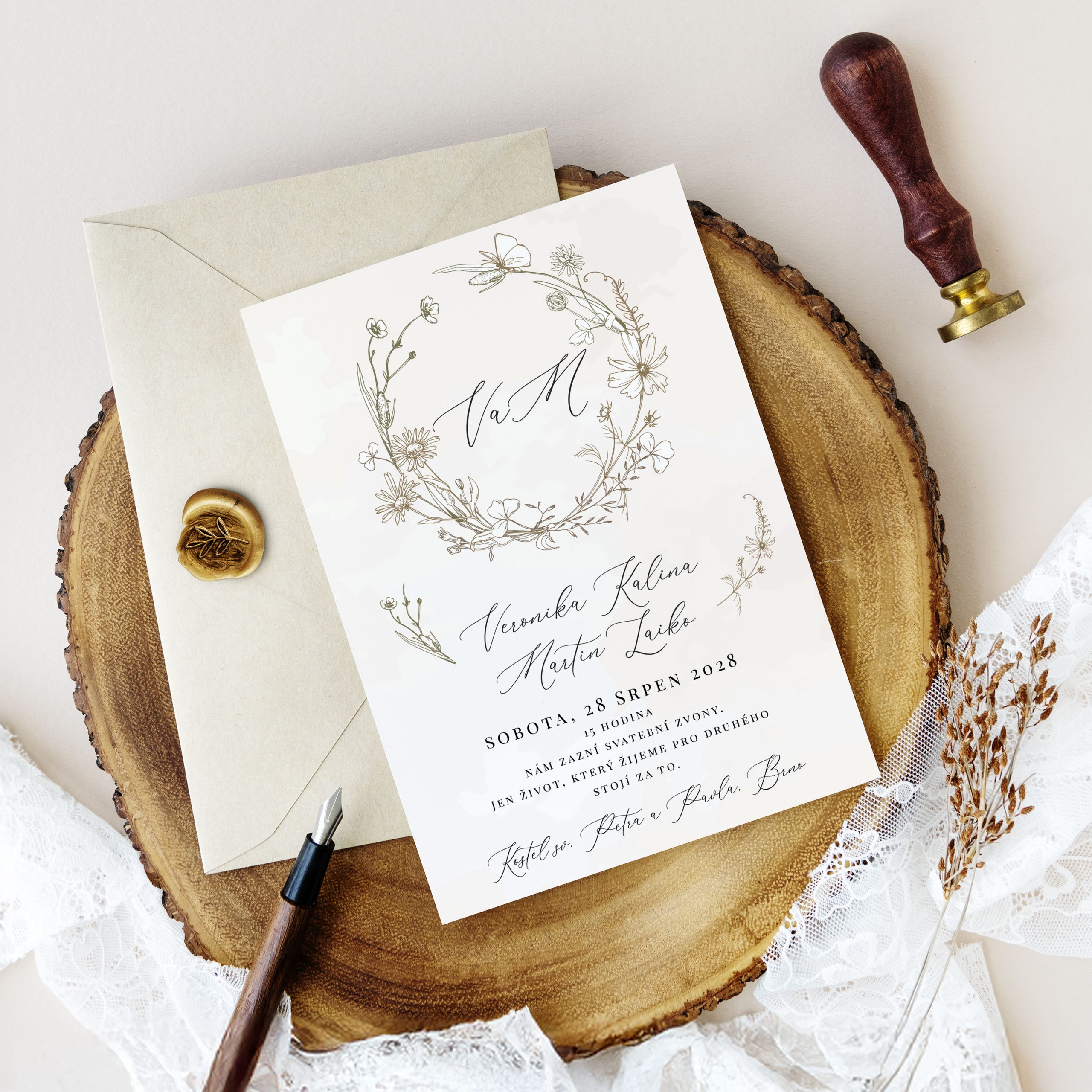 Luxusní svatební oznámení s lučními květinami LSO2025_CZ_0410
