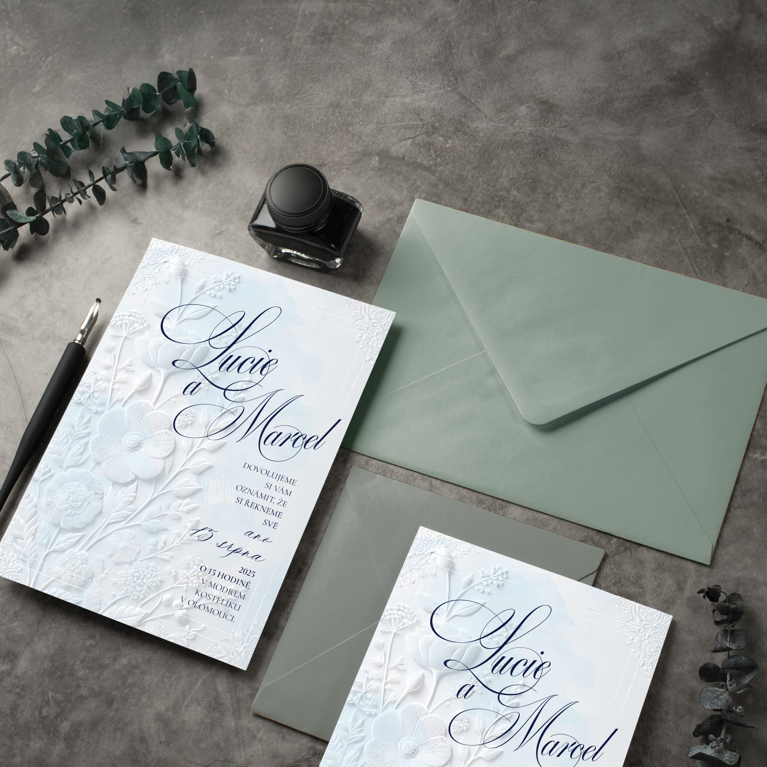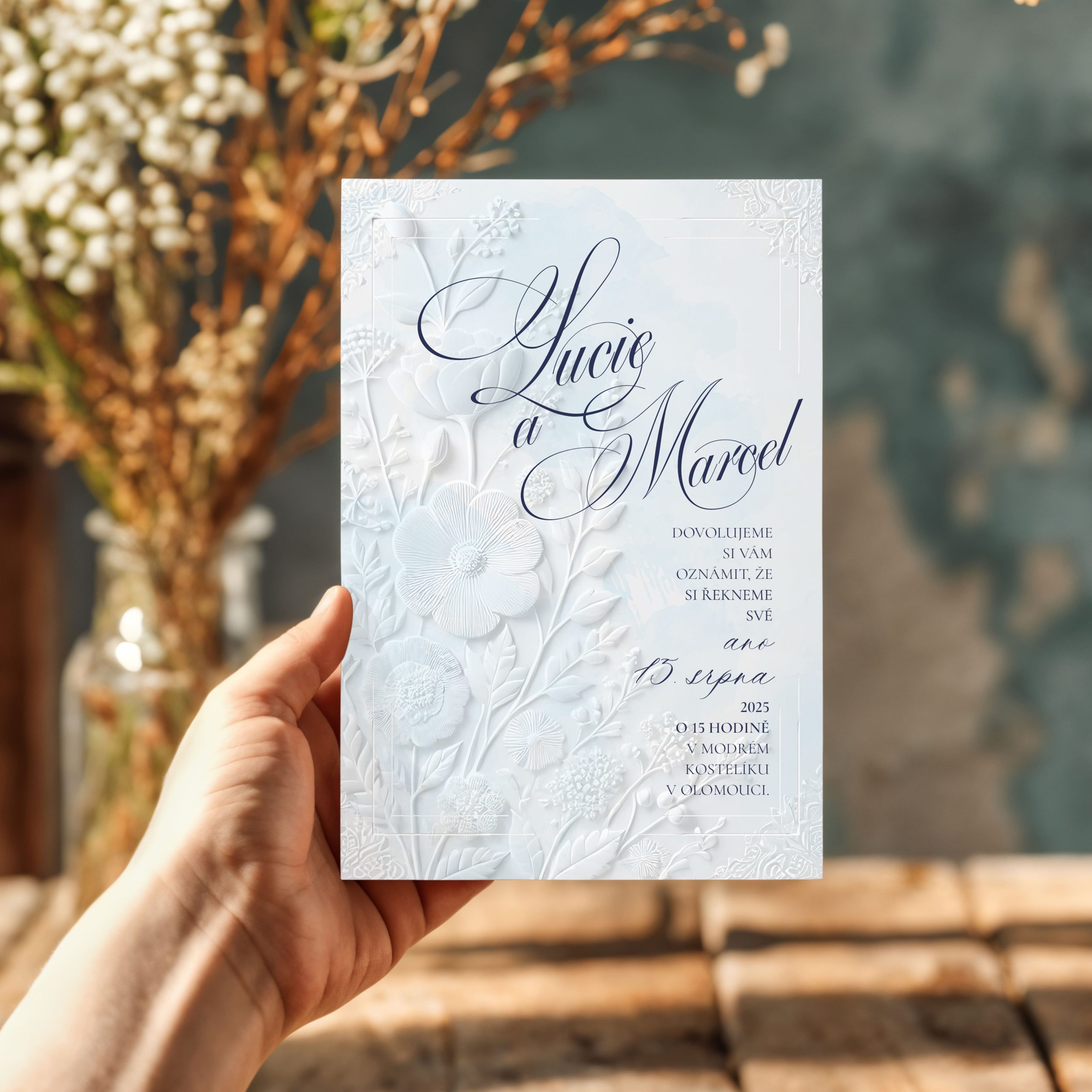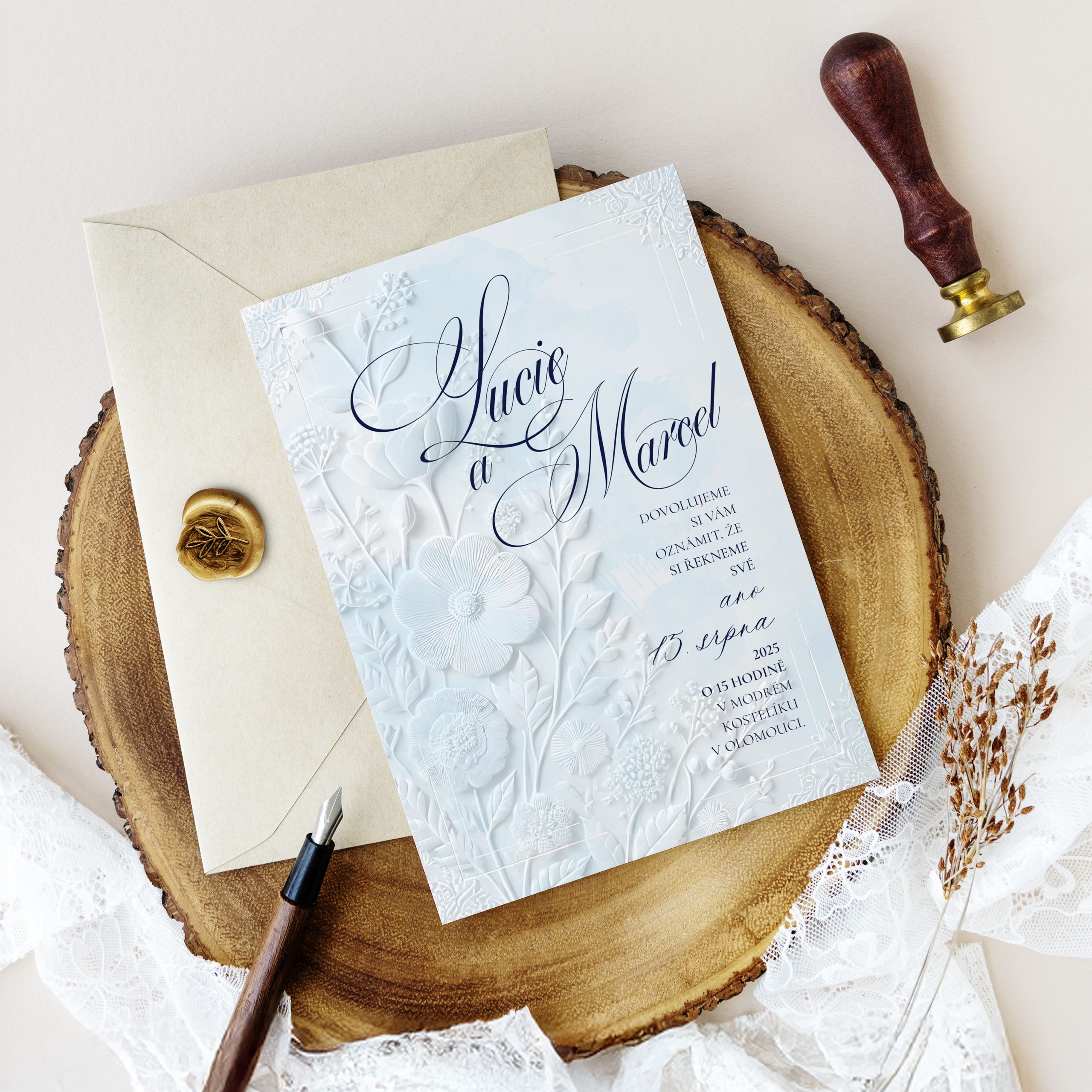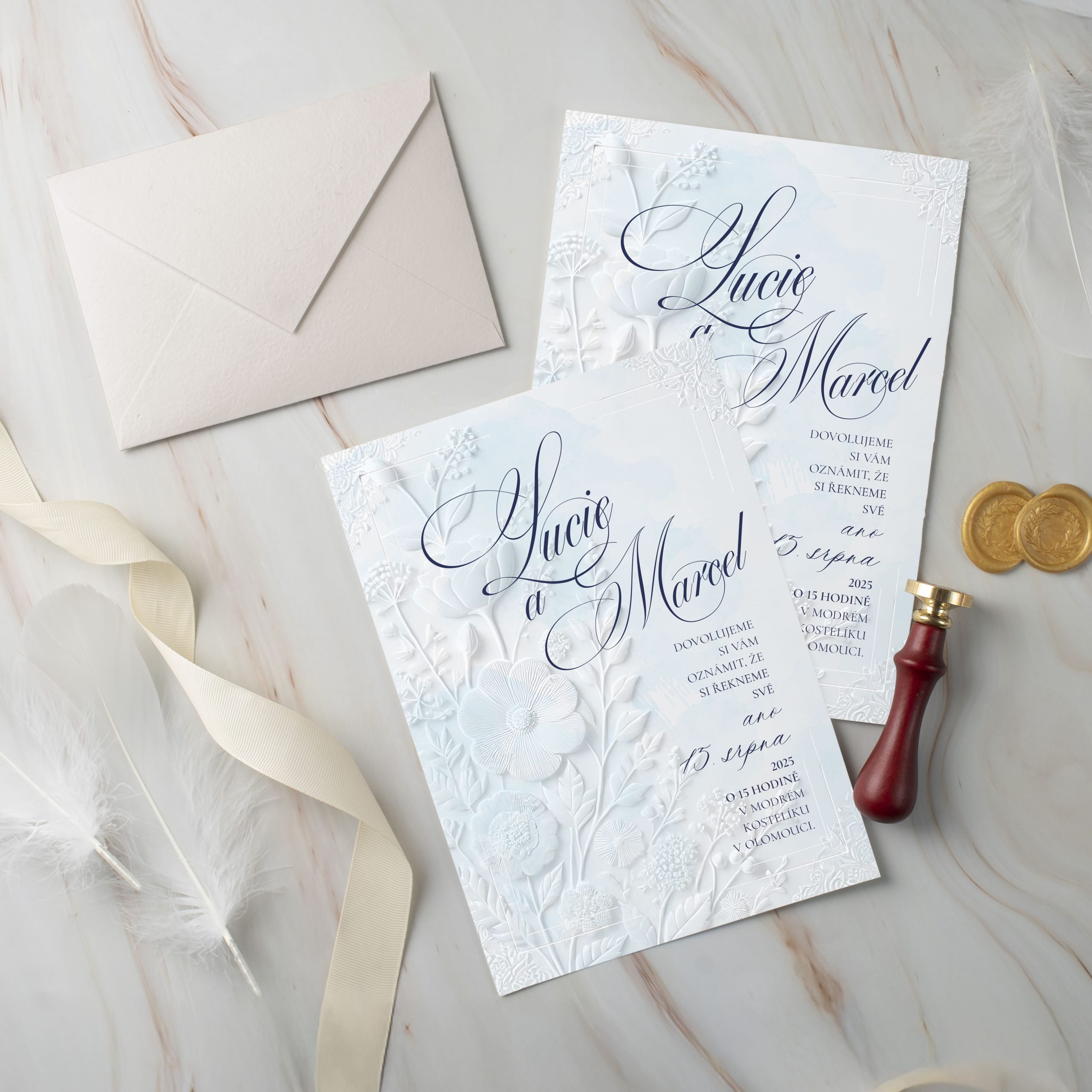 Luxusní svatební oznámení s modrými květmi LSO2025_CZ_0430