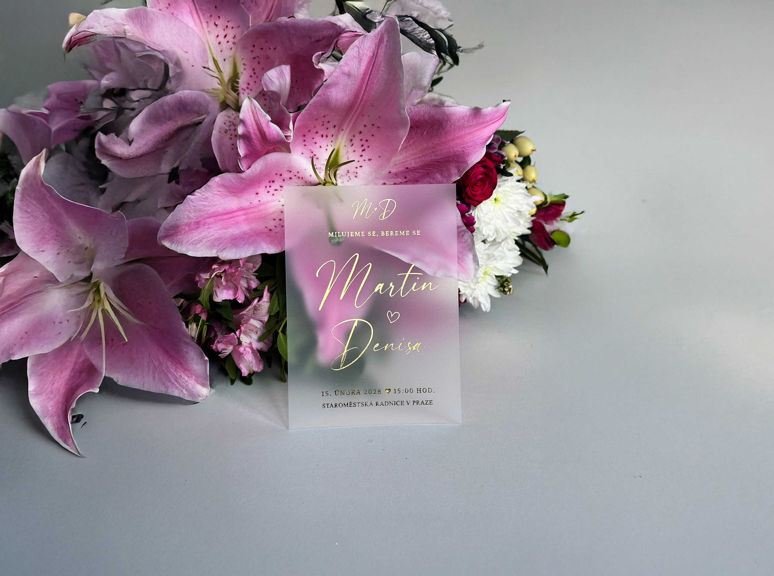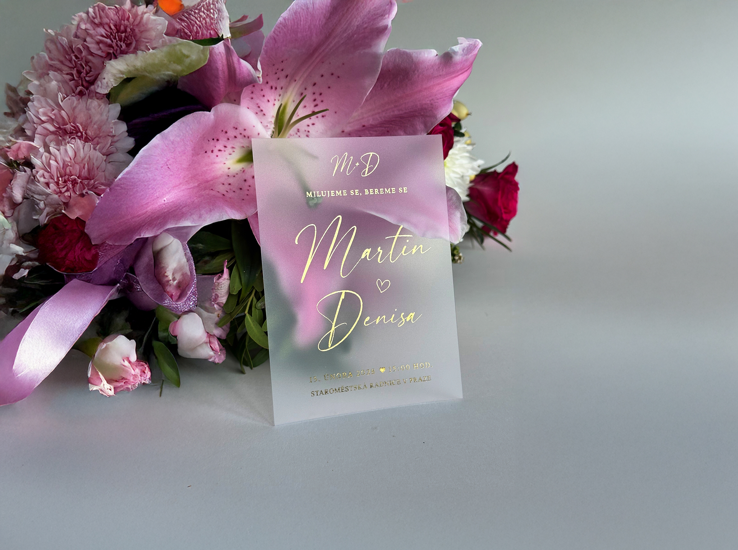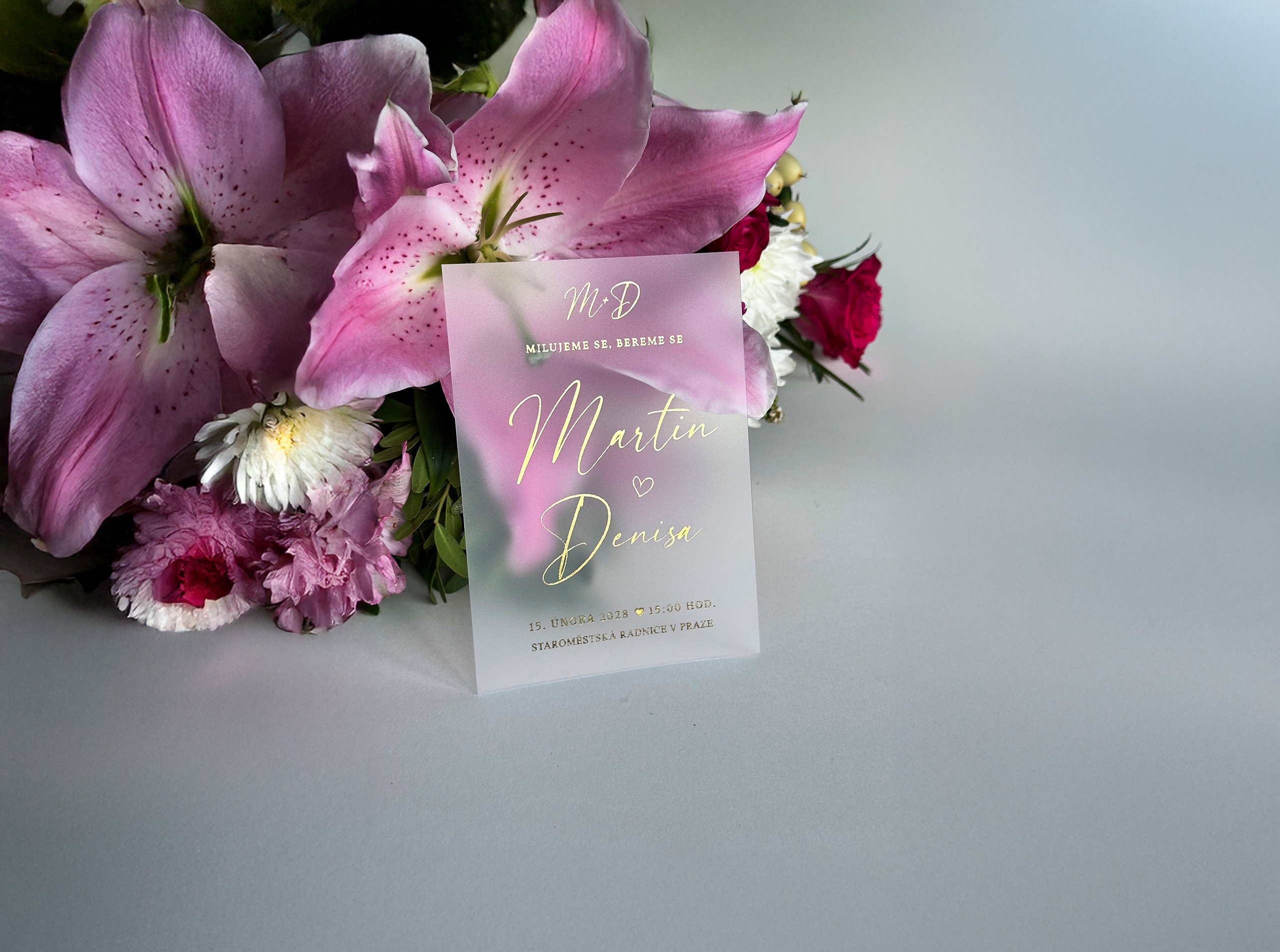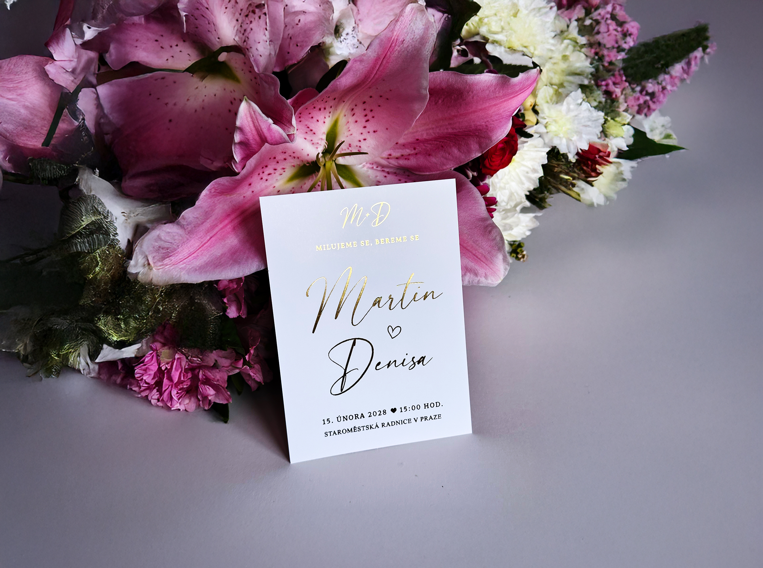 Každý kus vzniká s maximálním důrazem na detail – od návrhu až po finální tisk. Výsledkem jsou jedinečná svatební oznámení na míru, která vyniknou luxusním vzhledem a precizním zpracováním.