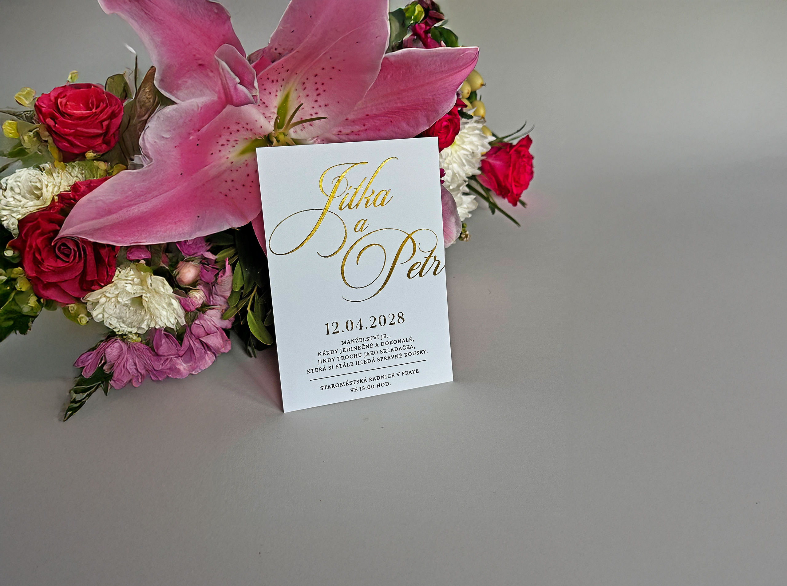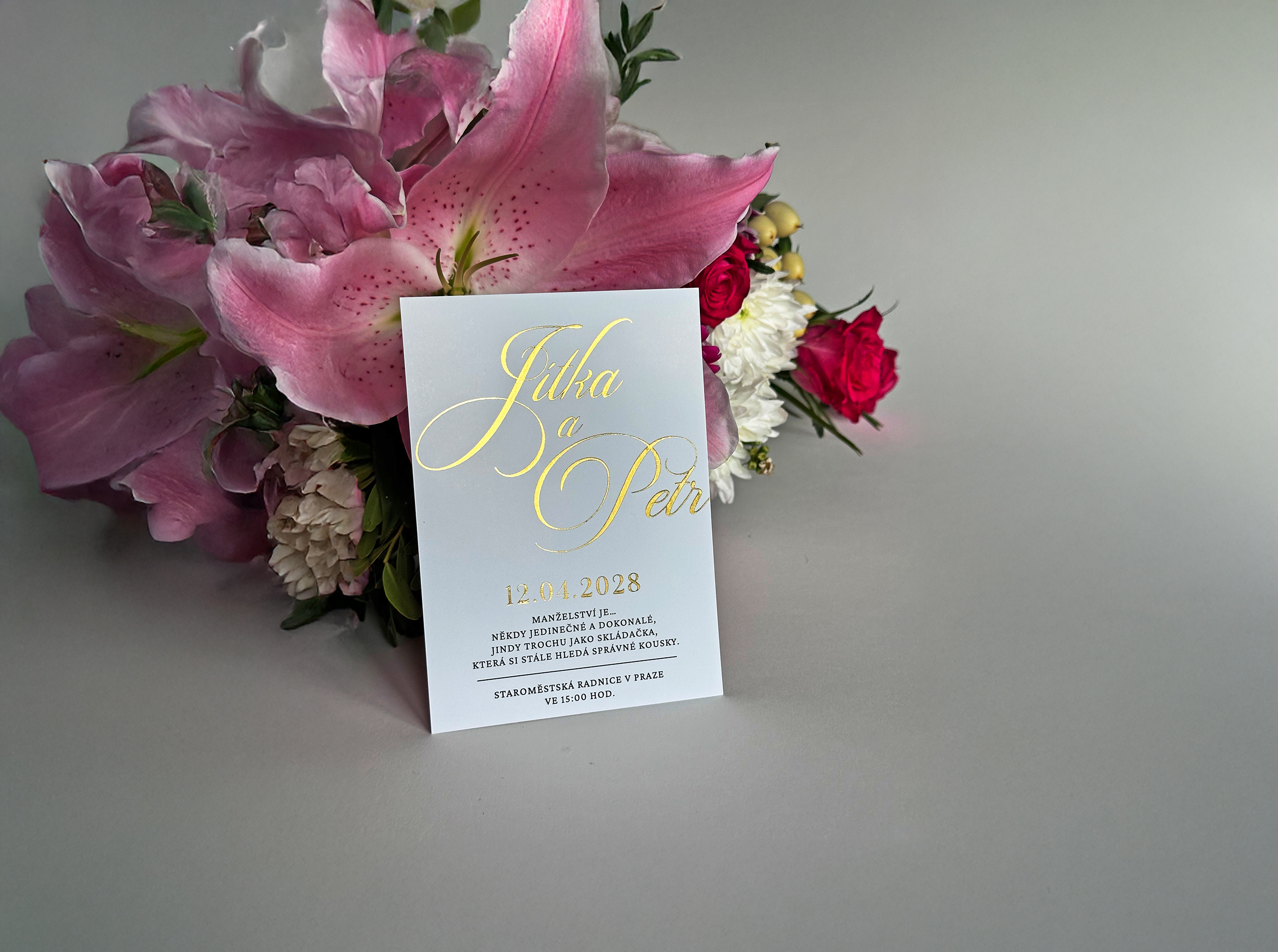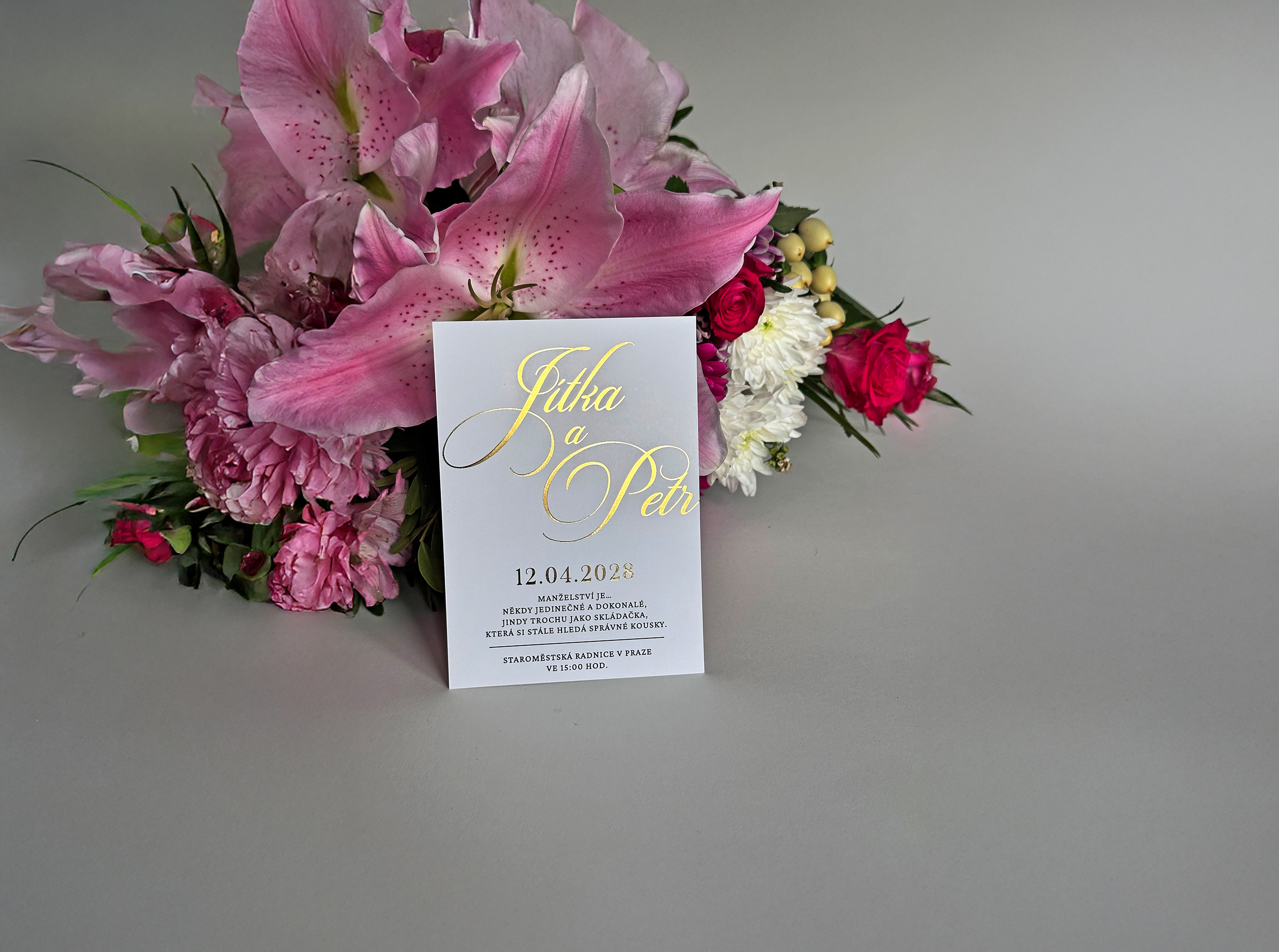 Každý kus vzniká s maximálním důrazem na detail – od návrhu až po finální tisk. Výsledkem jsou jedinečná svatební oznámení na míru, která vyniknou luxusním vzhledem a precizním zpracováním.