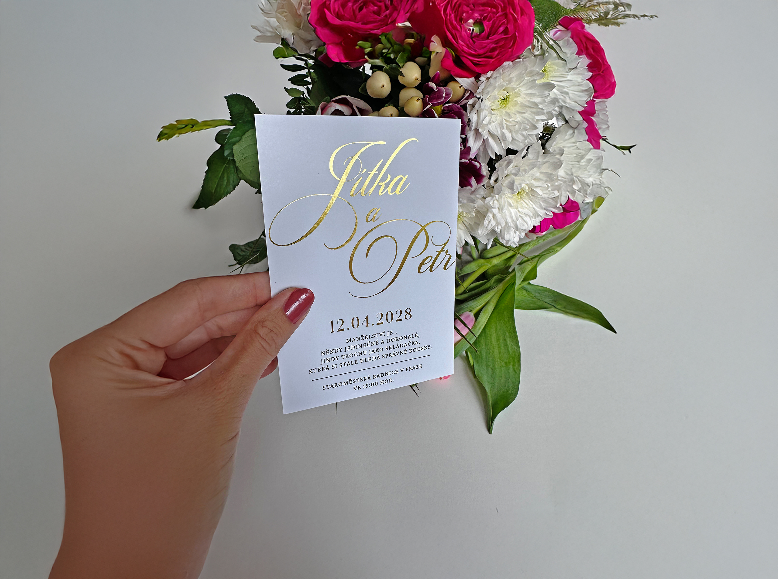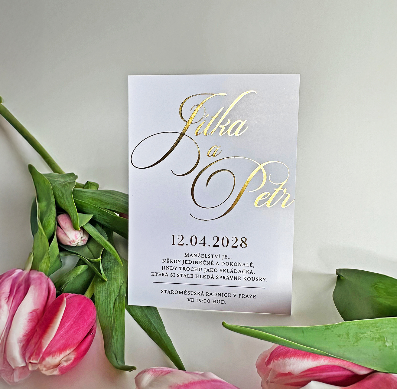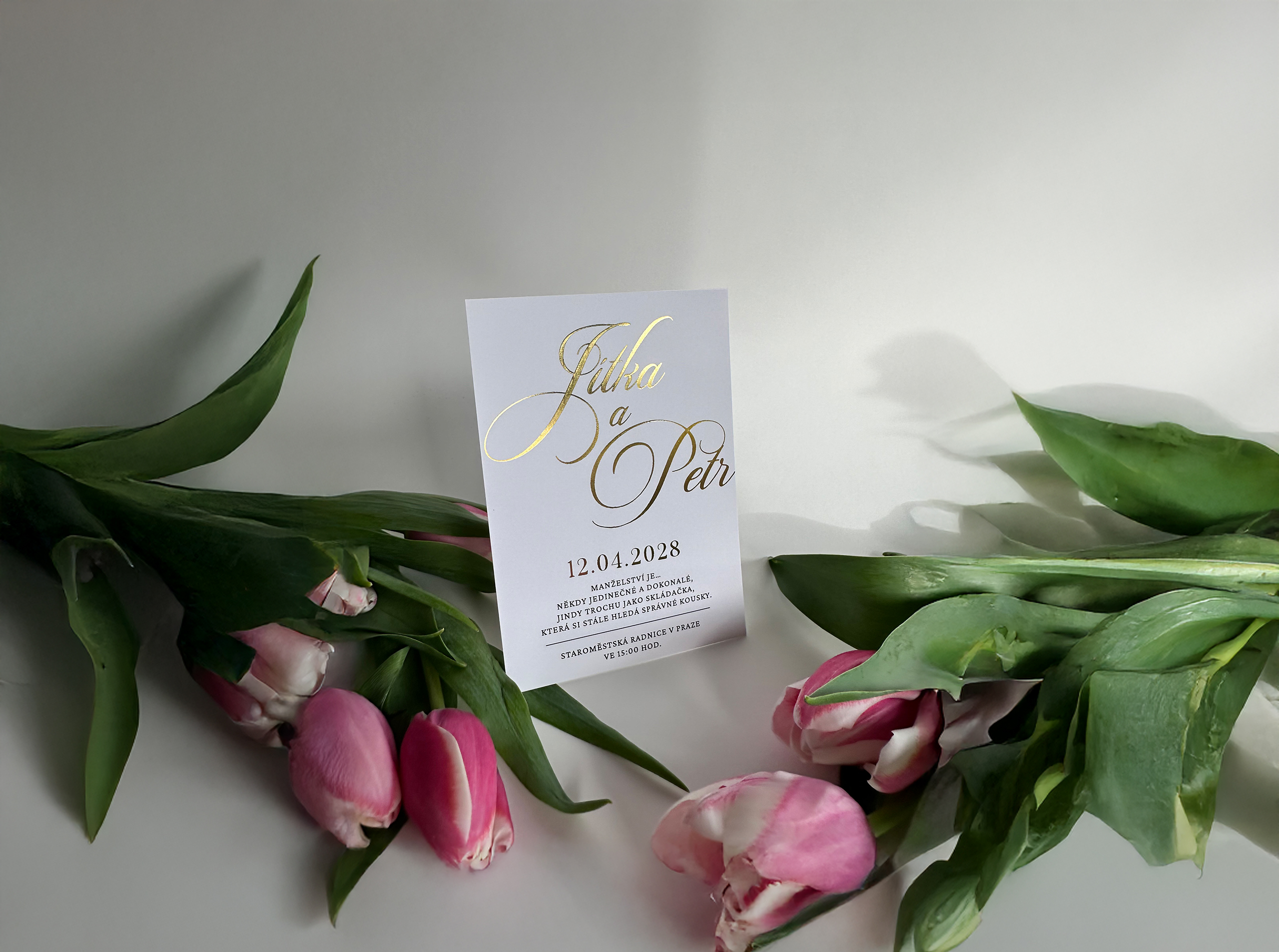 Každý kus vzniká s maximálním důrazem na detail – od návrhu až po finální tisk. Výsledkem jsou jedinečná svatební oznámení na míru, která vyniknou luxusním vzhledem a precizním zpracováním.