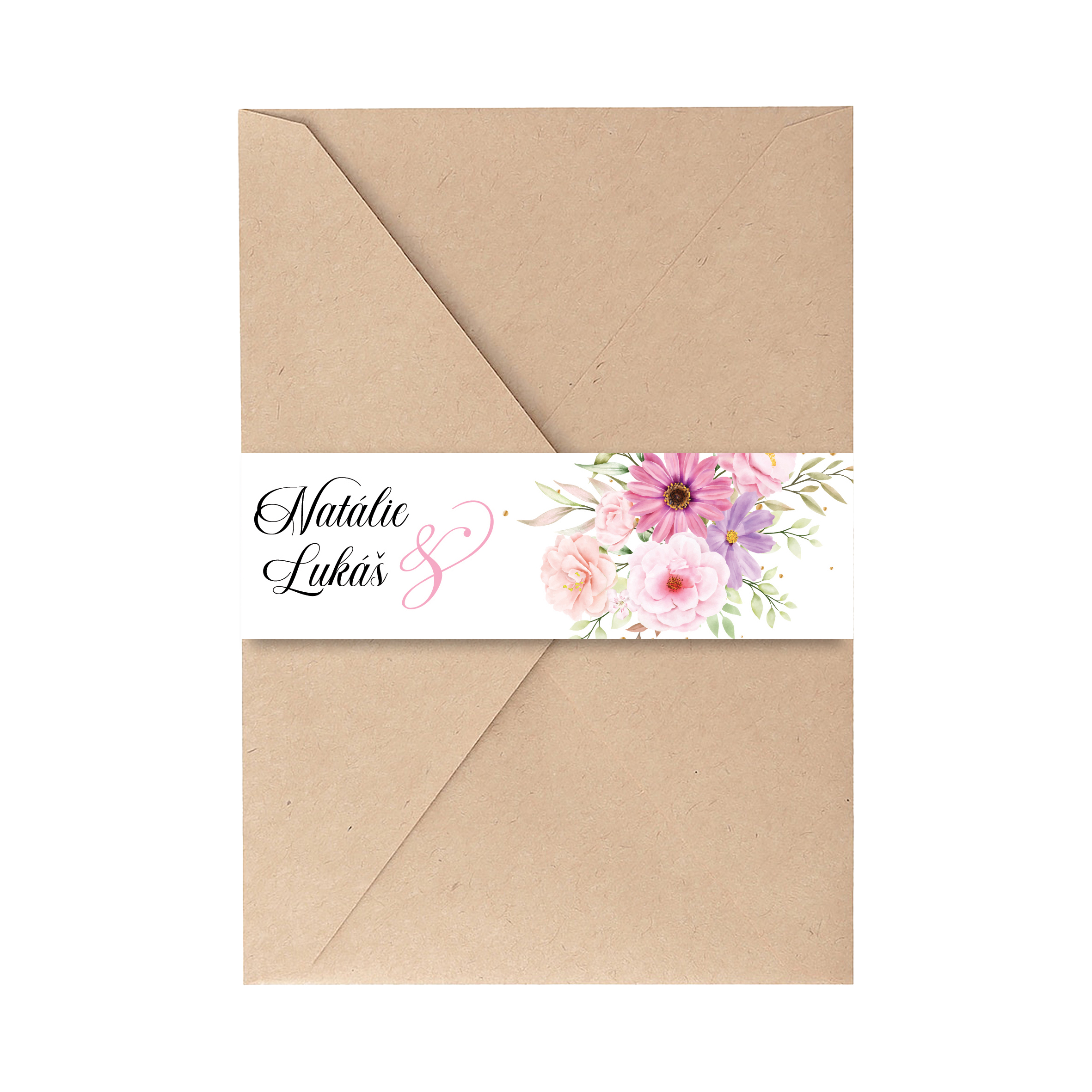Elegantní papírový pásek na svatební obálku je stylovým doplňkem, který dodá vašemu svatebnímu oznámení sladěný a vkusný vzhled. Skvěle poslouží jako jemné uzavření obálky a zároveň vizuální prvek, který zaujme už při předání.