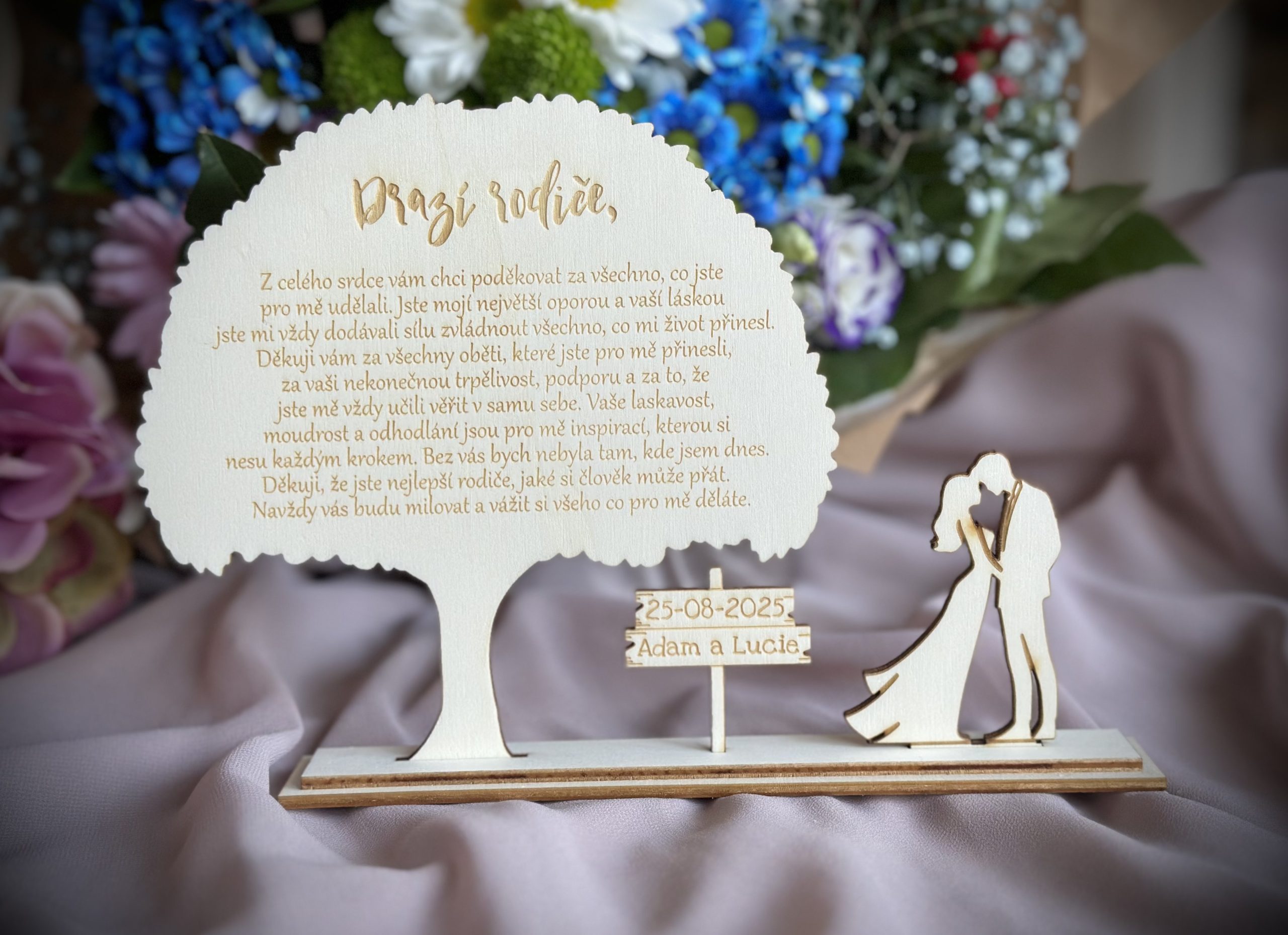 Hledáte poděkování rodičům na svatbu, které bude nejen jedinečné, ale i nezapomenutelné? Naše nabídka dřevěných poděkování rodičům je dokonalým způsobem, jak ocenit jejich péči a lásku.