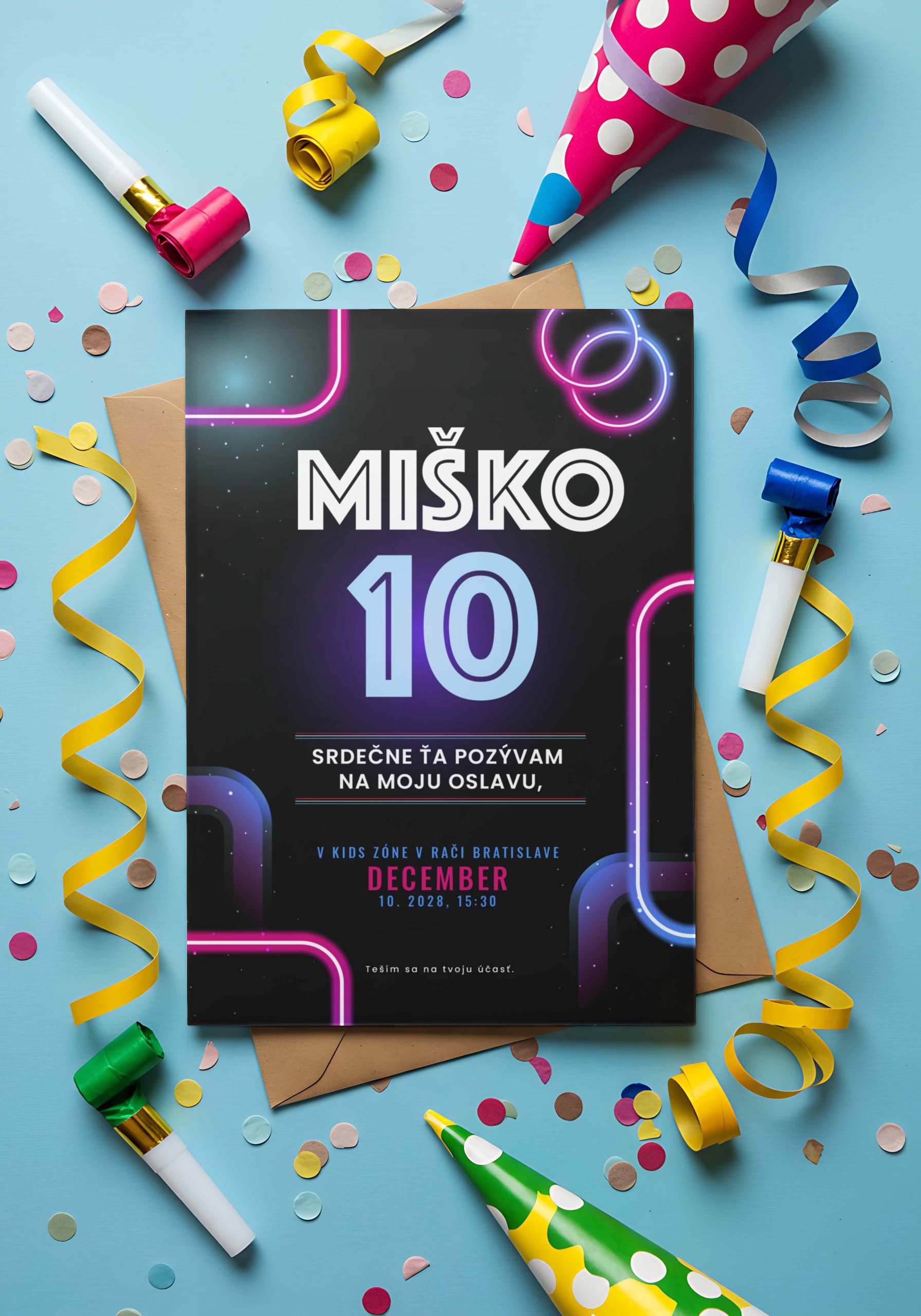Pozvánka na dětskou oslavu Laser – Moderní laserová pozvánka. Rychlý návrh do 24 hod a dodání do 3 dní.