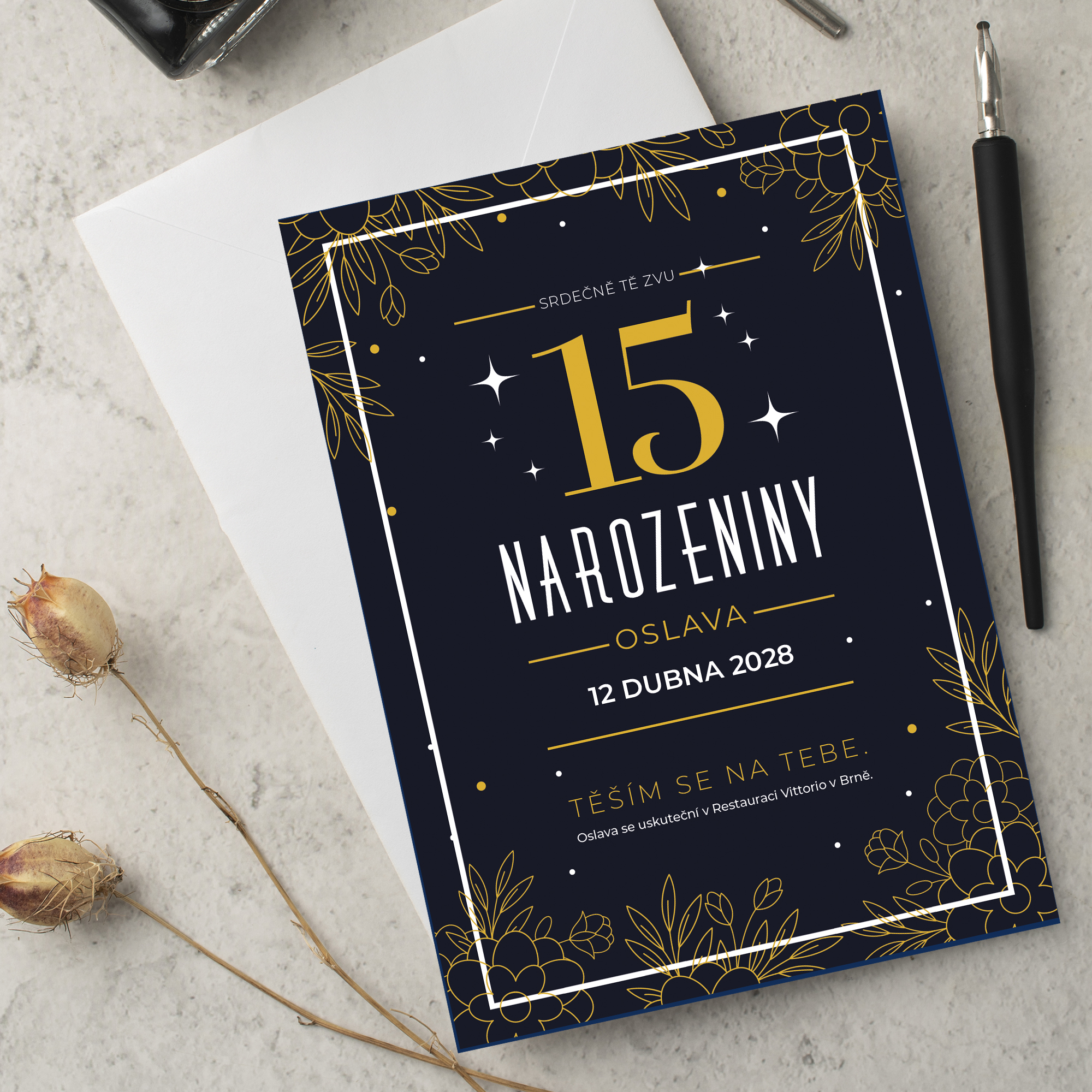 Vyberte si svou pozvánku na oslavu 15. narozenin a vytvořte nezapomenutelnou party . Návrh připravíme do 24 hodin a hotové pozvánky doručíme už do 3 dnů.