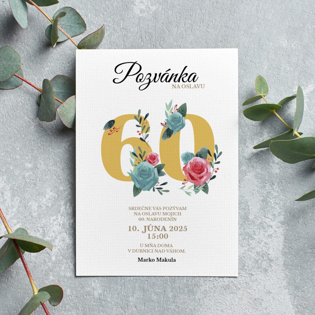 Pro pohodlné použití nabízíme pozvánka na 60 narozeniny ke stažení, které si vytisknete doma nebo odešlete elektronicky. Naše pozvánka na šedesátiny je skvělou volbou i pro ty, kteří chtějí něco výjimečného bez zbytečné námahy. Samozřejmostí je i pozvánka na oslavu 60 narozenin s osobním dotekem.