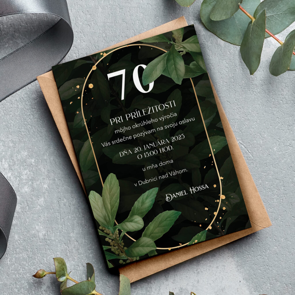 Každá pozvánka 70 může být elegantní, moderní nebo veselá – podle toho, jaký typ oslavy chystáte. Pokud plánujete rodinné setkání nebo slavnostní oběd, doporučujeme tradičnější pozvánka na sedmdesátiny s osobním textem, fotografií nebo decentní grafikou. Naše pozvánky ladíme na míru pro dámy i pány.