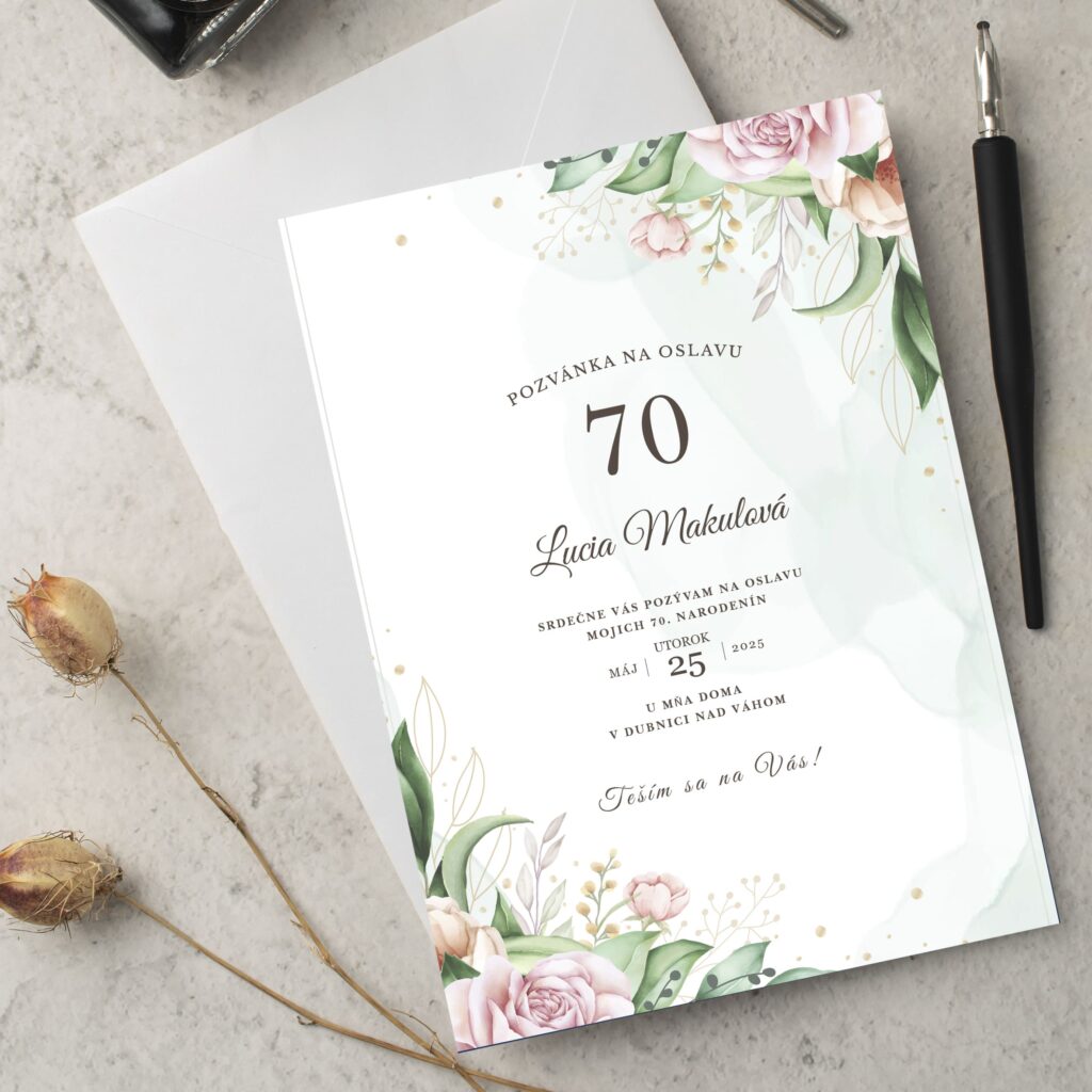 Každá pozvánka 70 může být elegantní, moderní nebo veselá – podle toho, jaký typ oslavy chystáte. Pokud plánujete rodinné setkání nebo slavnostní oběd, doporučujeme tradičnější pozvánka na sedmdesátiny s osobním textem, fotografií nebo decentní grafikou. Naše pozvánky ladíme na míru pro dámy i pány.