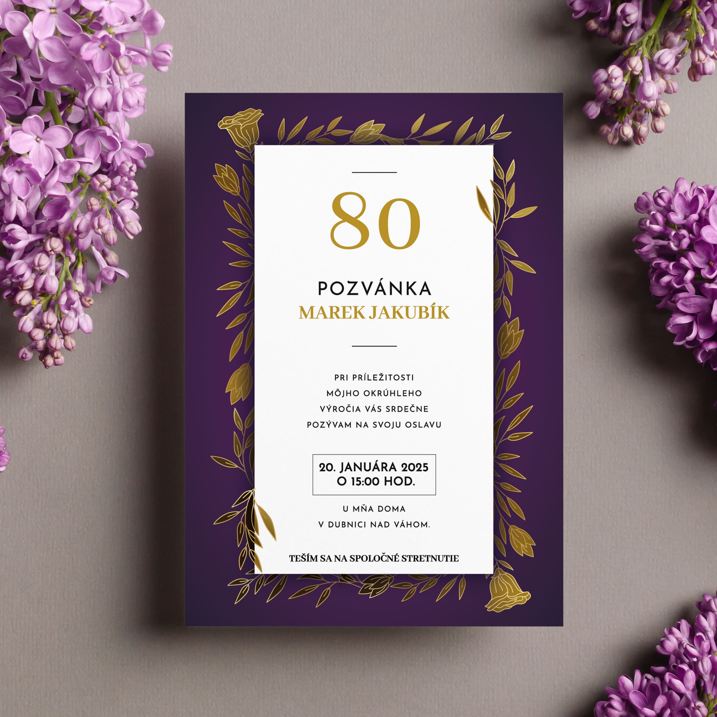 Oslava 80. narozenin je jedinečný okamžik, který si zaslouží být sdílen s těmi nejbližšími. Naše pozvánka na 80 narozeniny vám pomůže elegantně pozvat rodinu, přátele i známé na výjimečnou oslavu. Každá pozvánka je připravena s respektem a péčí – přesně tak, jak si tento den zaslouží.