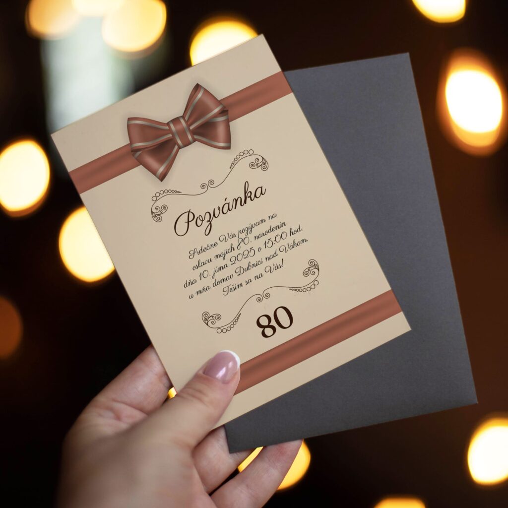 Oslava 80. narozenin je jedinečný okamžik, který si zaslouží být sdílen s těmi nejbližšími. Naše pozvánka na 80 narozeniny vám pomůže elegantně pozvat rodinu, přátele i známé na výjimečnou oslavu. Každá pozvánka je připravena s respektem a péčí – přesně tak, jak si tento den zaslouží.