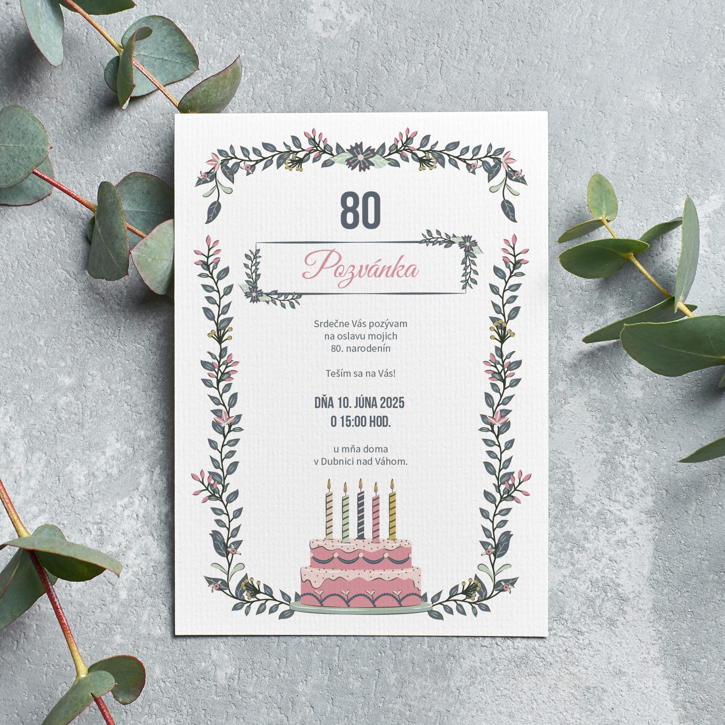 Oslava 80. narozenin je jedinečný okamžik, který si zaslouží být sdílen s těmi nejbližšími. Naše pozvánka na 80 narozeniny vám pomůže elegantně pozvat rodinu, přátele i známé na výjimečnou oslavu. Každá pozvánka je připravena s respektem a péčí – přesně tak, jak si tento den zaslouží.
