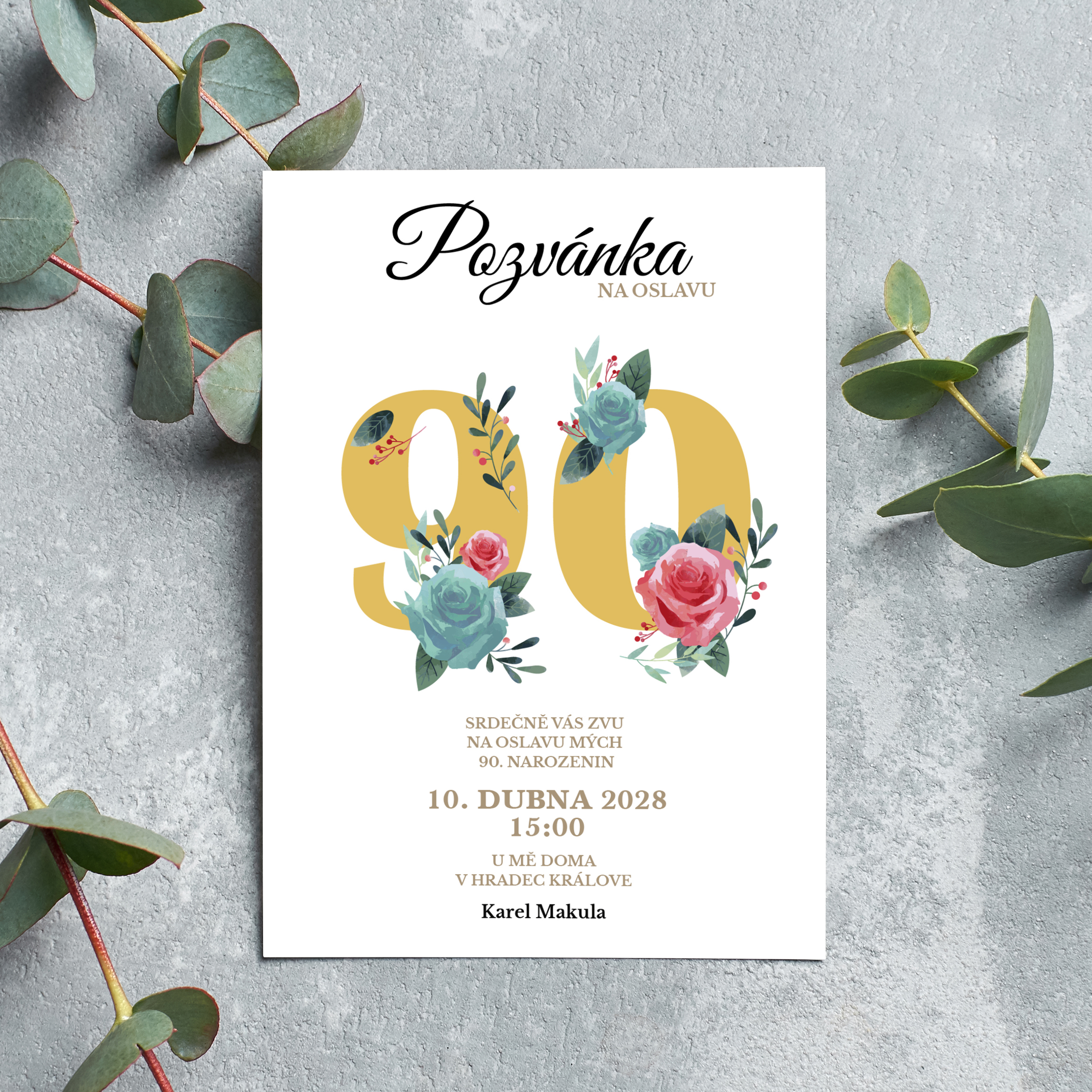 Devadesáté narozeniny jsou výjimečným životním jubileem, které si zaslouží důstojnou a krásnou oslavu . Tato pozvánka na oslavu 90. narozenin je navržena tak, aby elegantně sdělila všechny důležité informace a zároveň vytvořila slavnostní první dojem.
