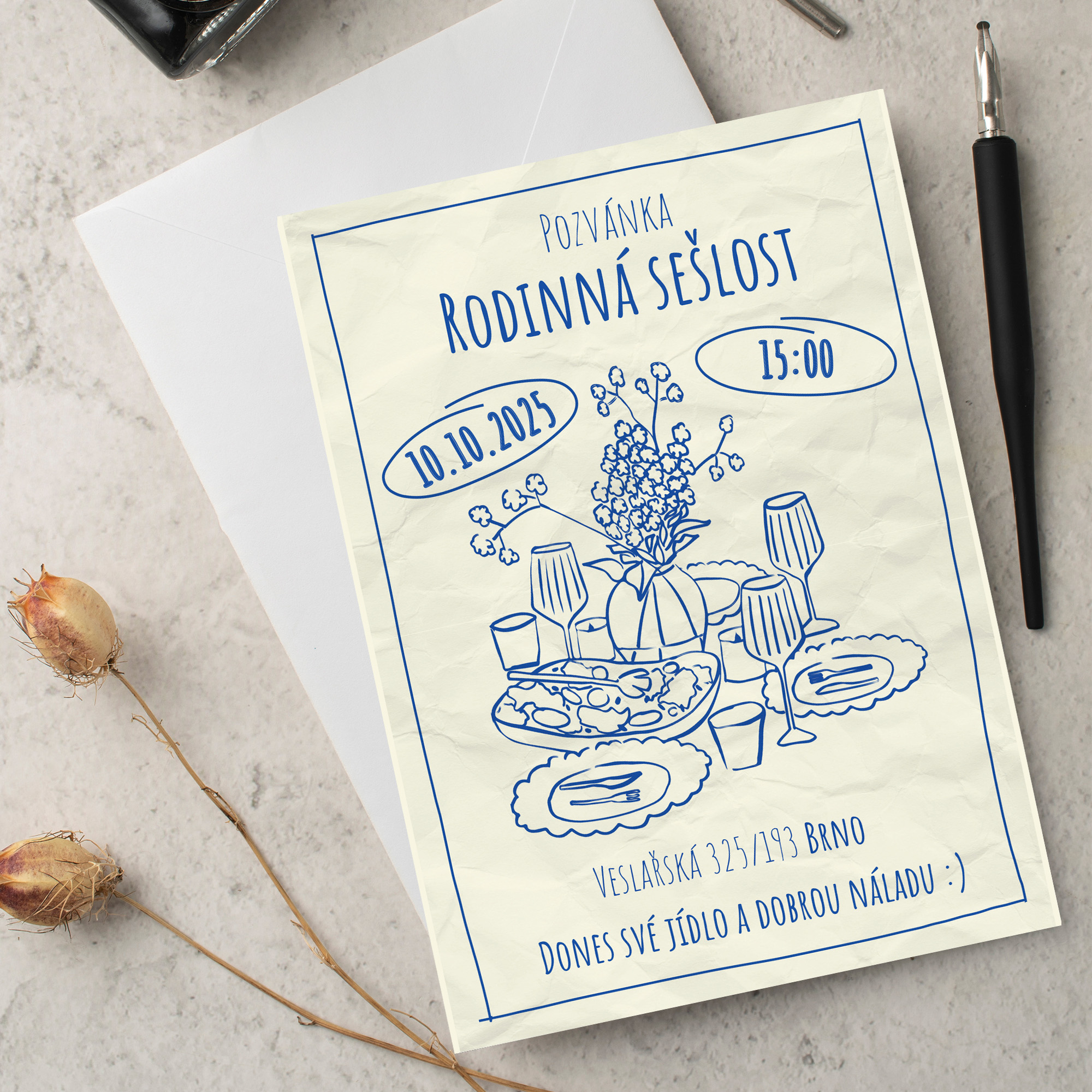 Stylová pozvánka na rodinnou sešlost je ideální způsob, jak pozvat blízké