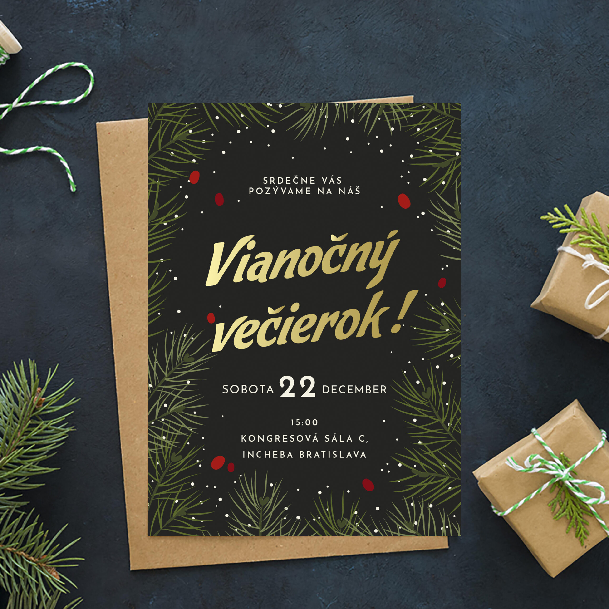 Každá vanocni vecirek pozvanka je dostupná ve třech elegantních formátech: A6 (14 × 10 cm) pro jednoduché rozdání, DL (20 × 10 cm) pro profesionální vzhled a čtvercový formát (14 × 14 cm), který upoutá svým stylem. Rádi vám poradíme, co se hodí právě pro váš vánoční večírek.