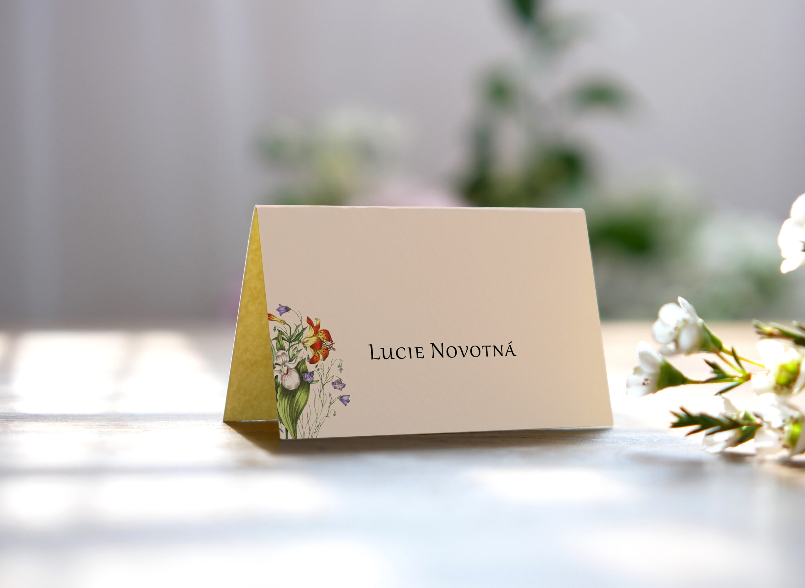 Přírodní svatební jmenovka kvítky