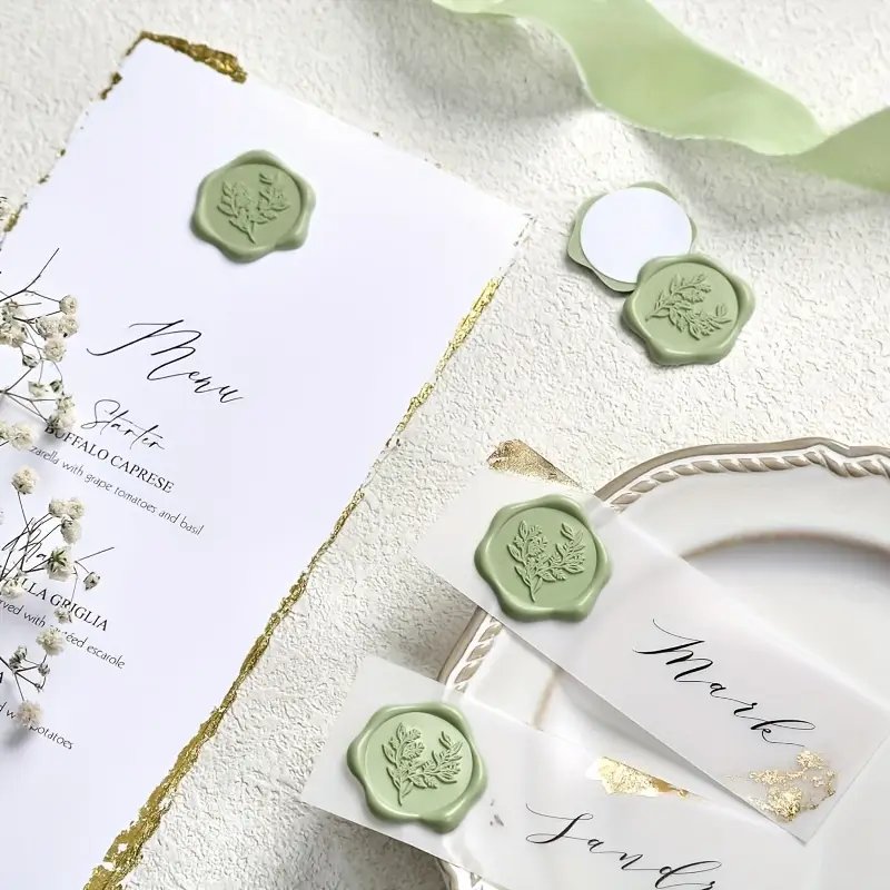 Samolepicí vosková pečeť promění obyčejnou obálku v elegantní detail, který si hosté zapamatují.