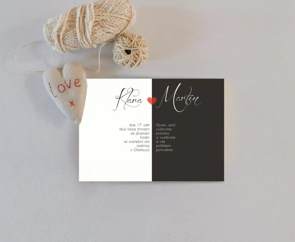 Jednoduché svatební oznámení ve stylu minimalismu a hesla: „V jednoduchosti je krása.“