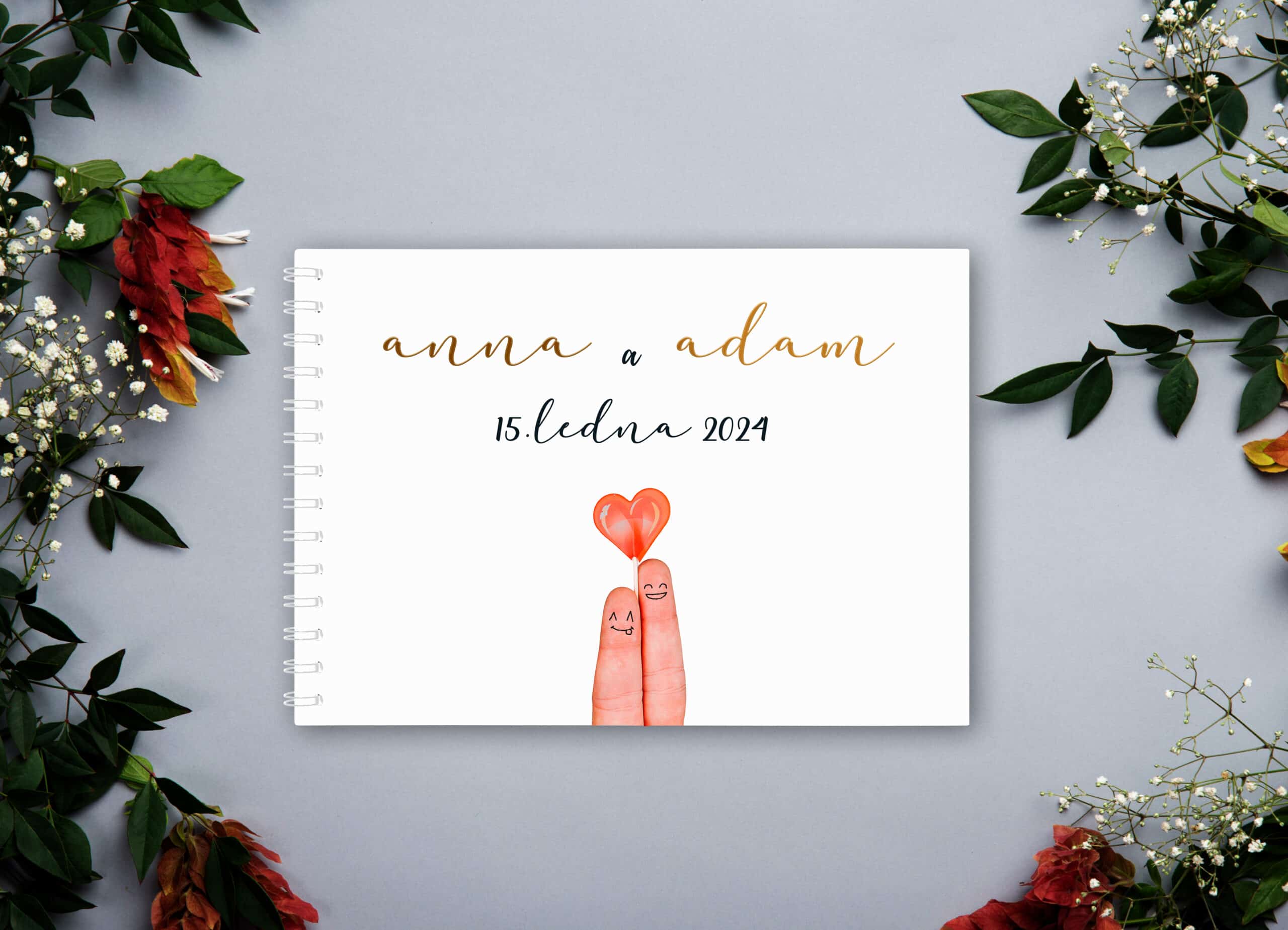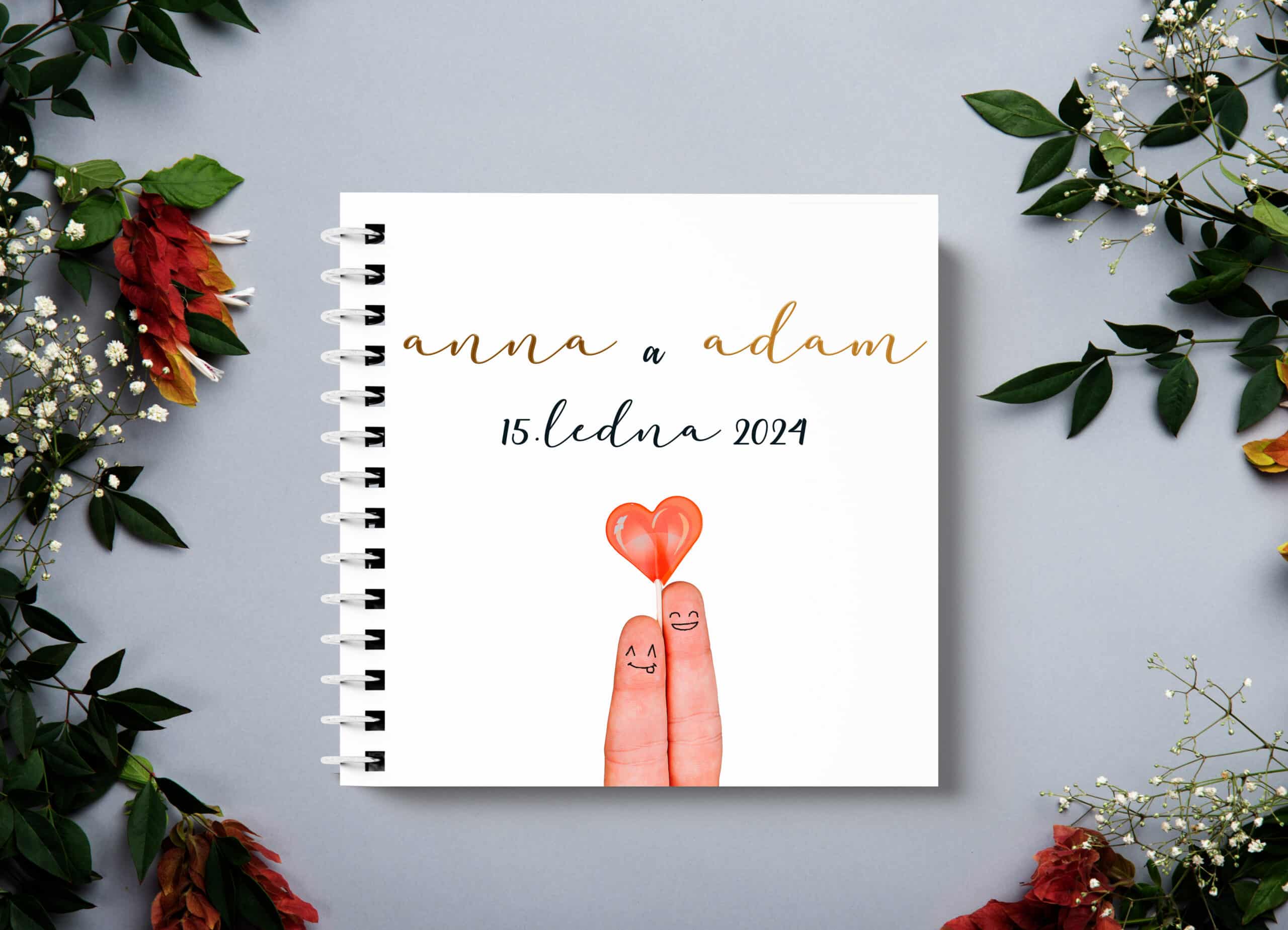 - Personalizované knihy s monogramy či jmény novomanželů