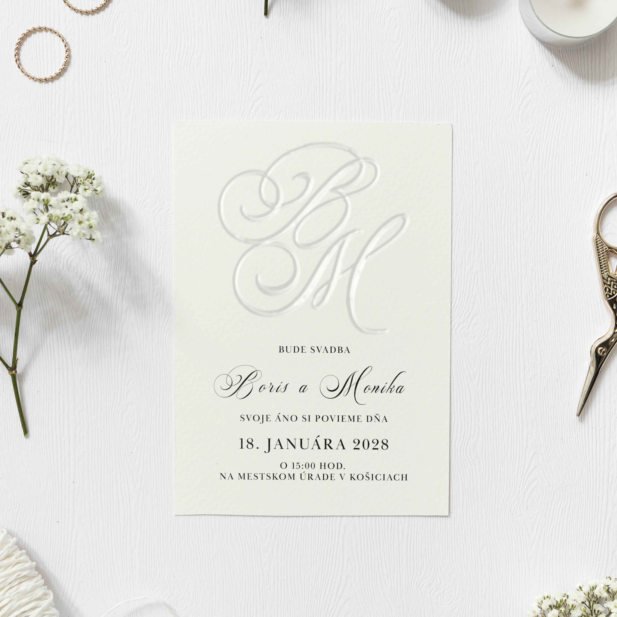 Svatební oznámení emboss – slepotisk Iniciály