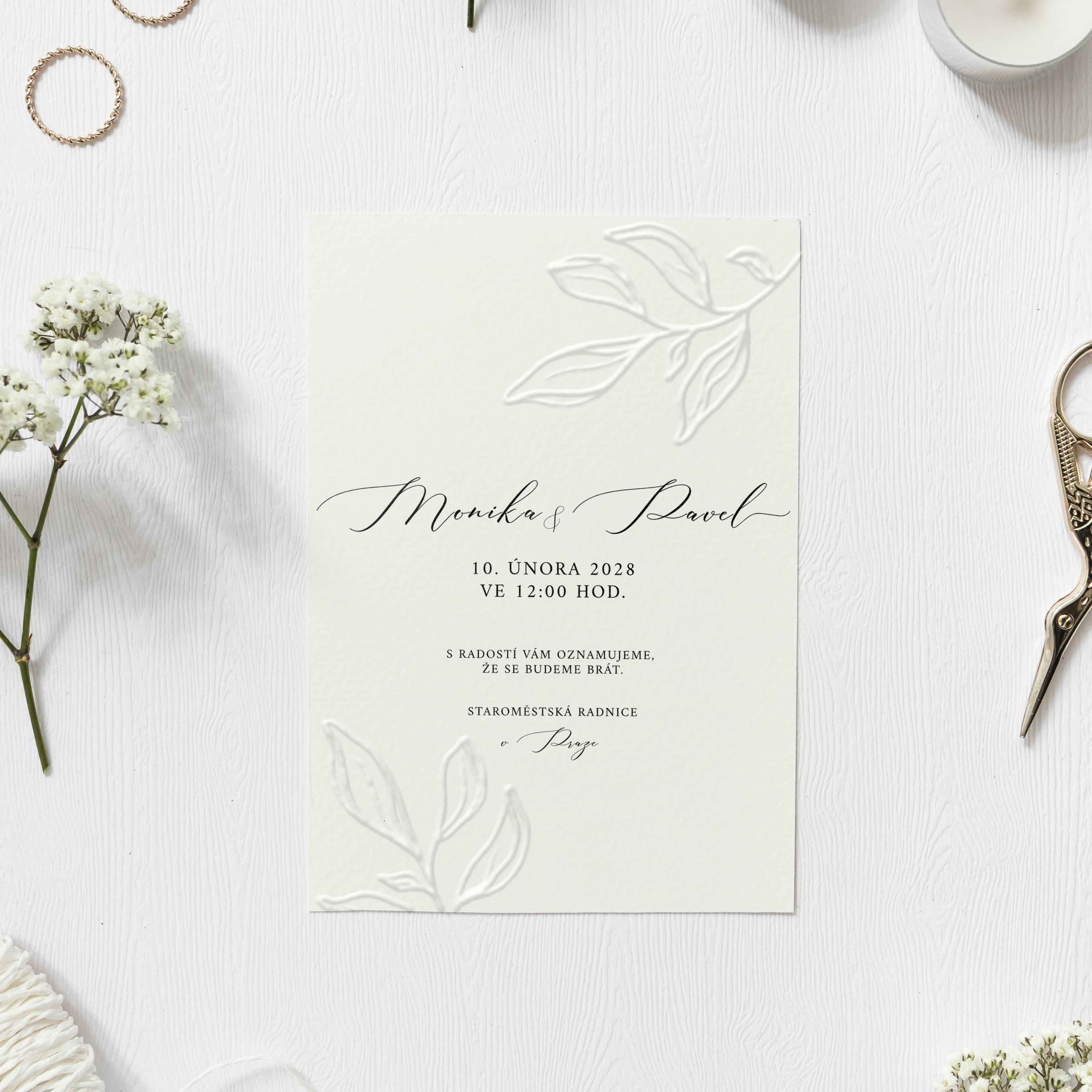 Toto embosované svatební oznámení není jen kousek papíru. Je to vzpomínka, která přetrvá roky.