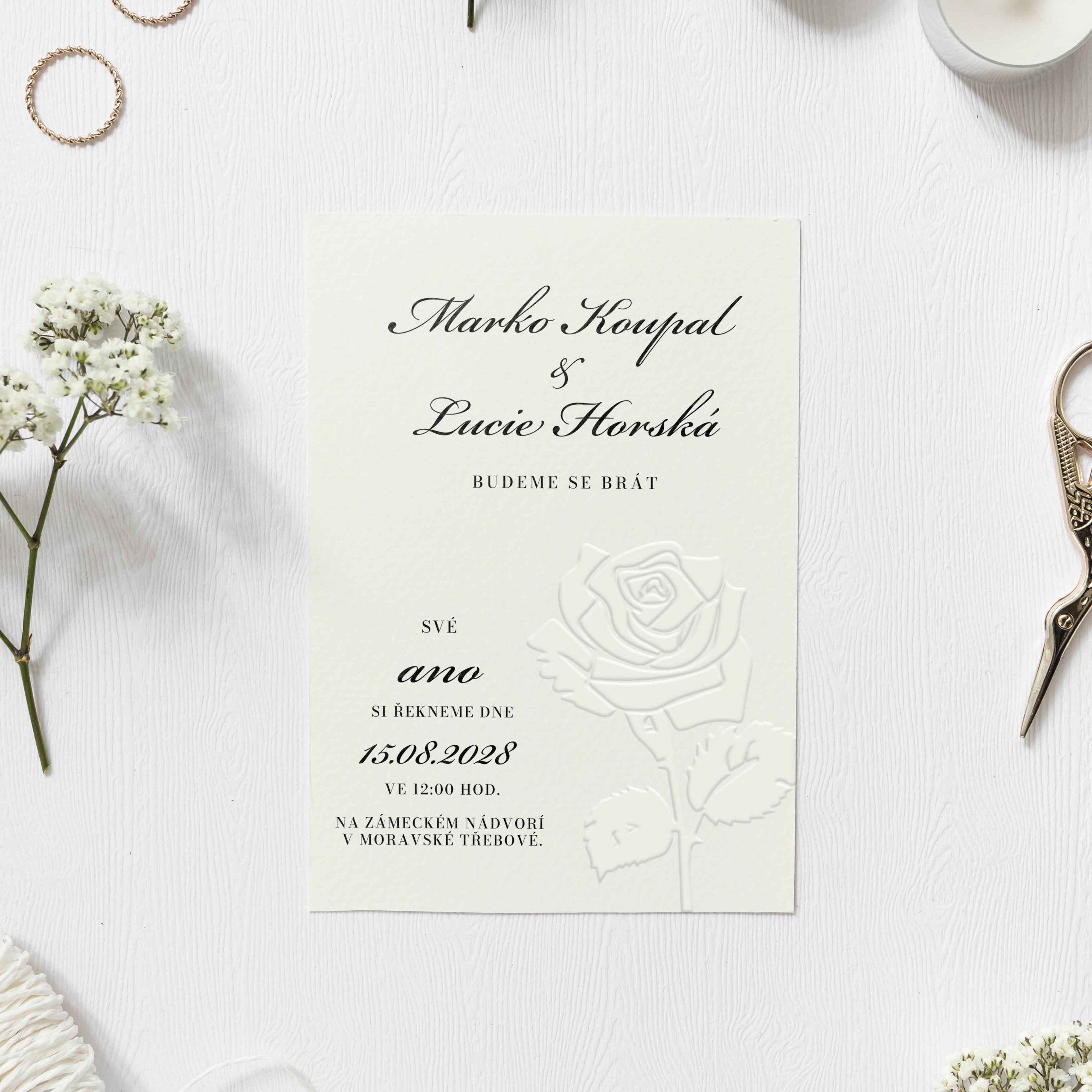 Svatební oznámení emboss – slepotisk Rose