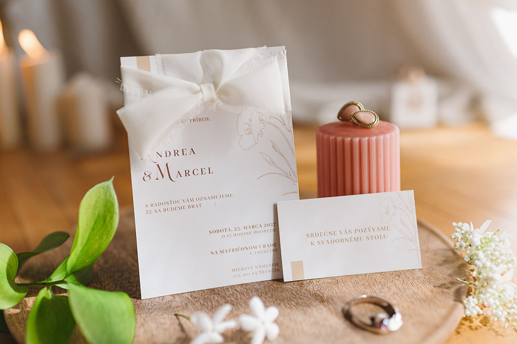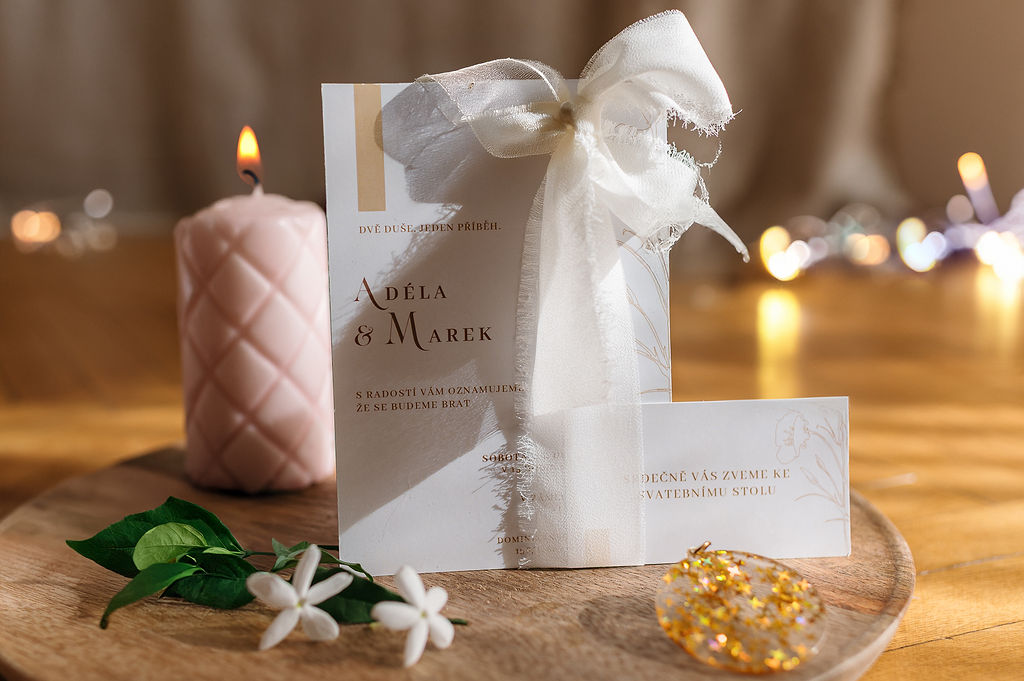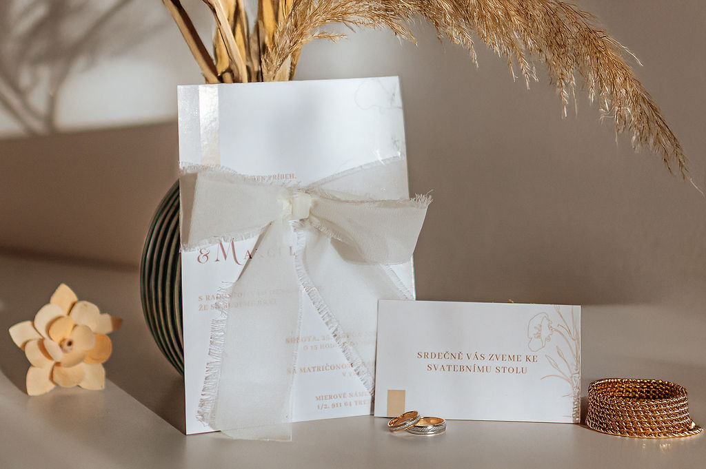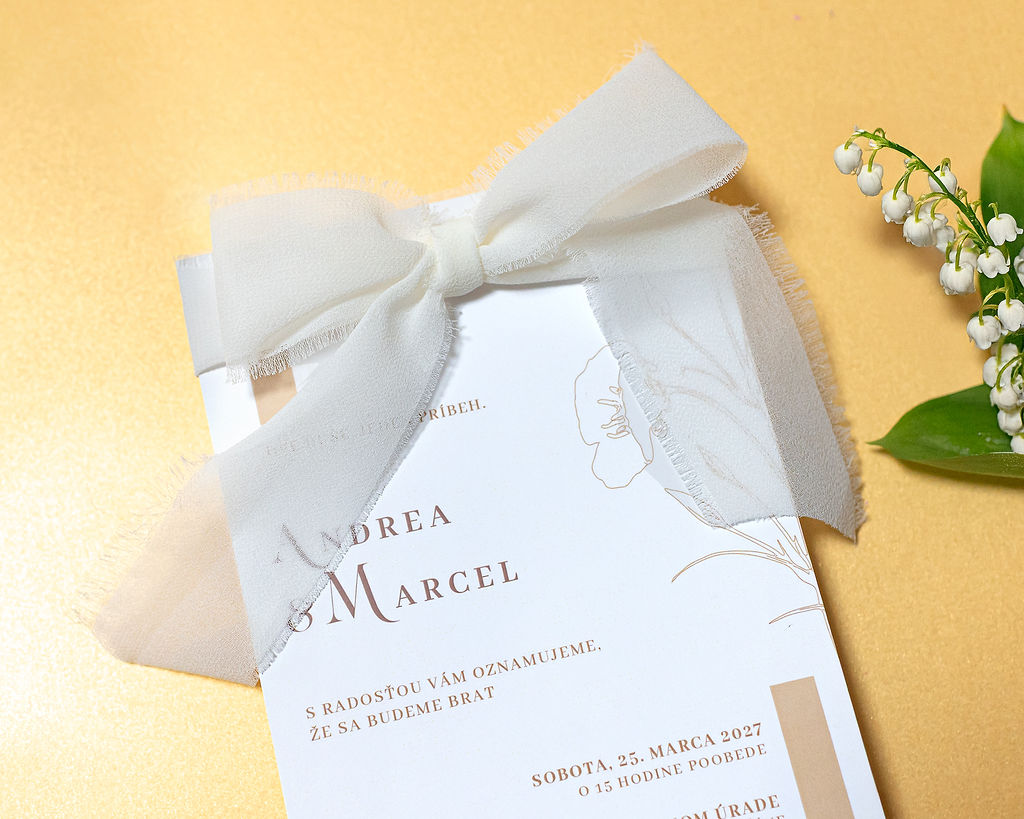 Svatební oznámení s mašlí – elegantní detail, který zaujme