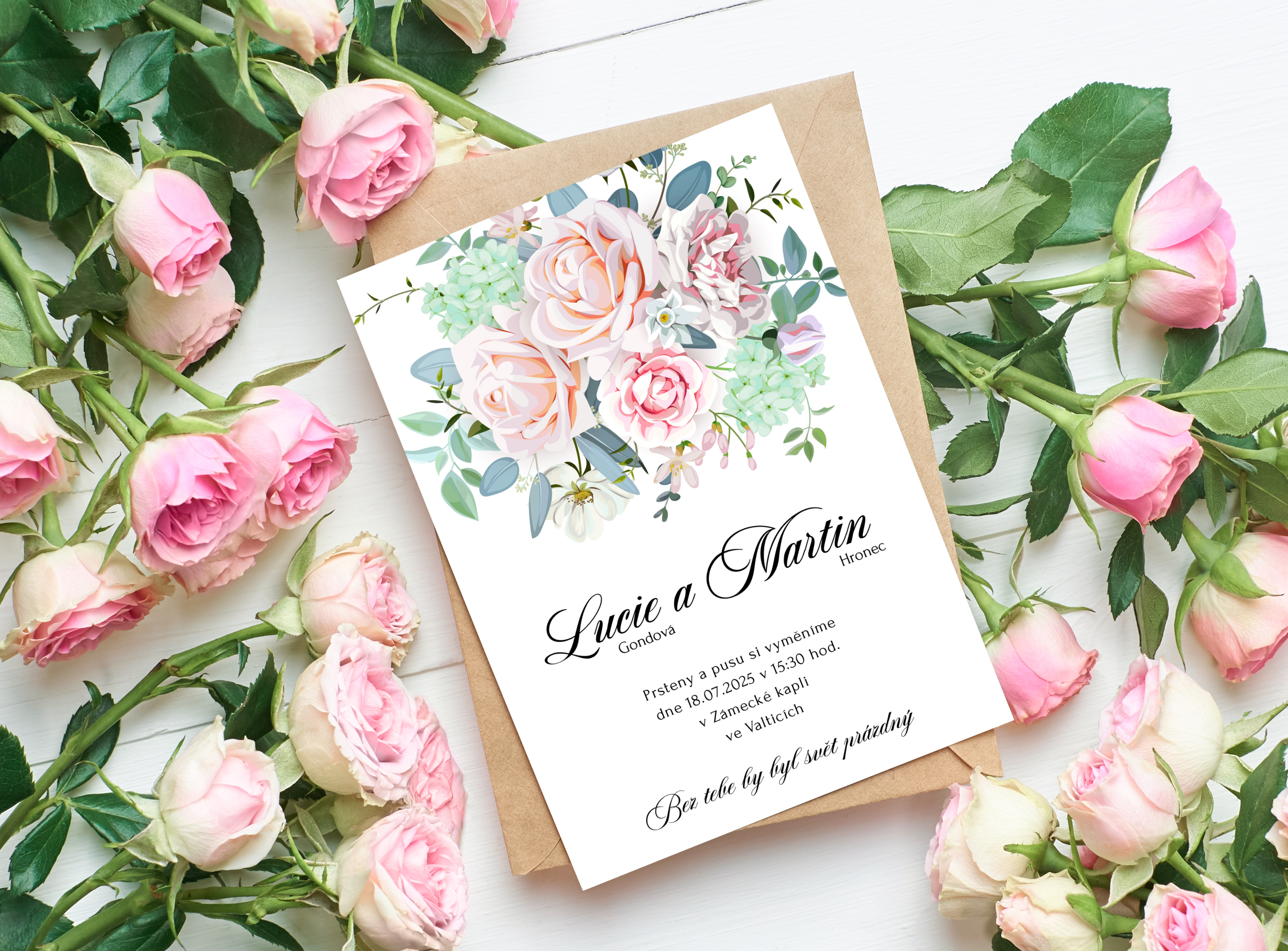 V tomhle designu vám vypracujeme všechny svatební tiskoviny.