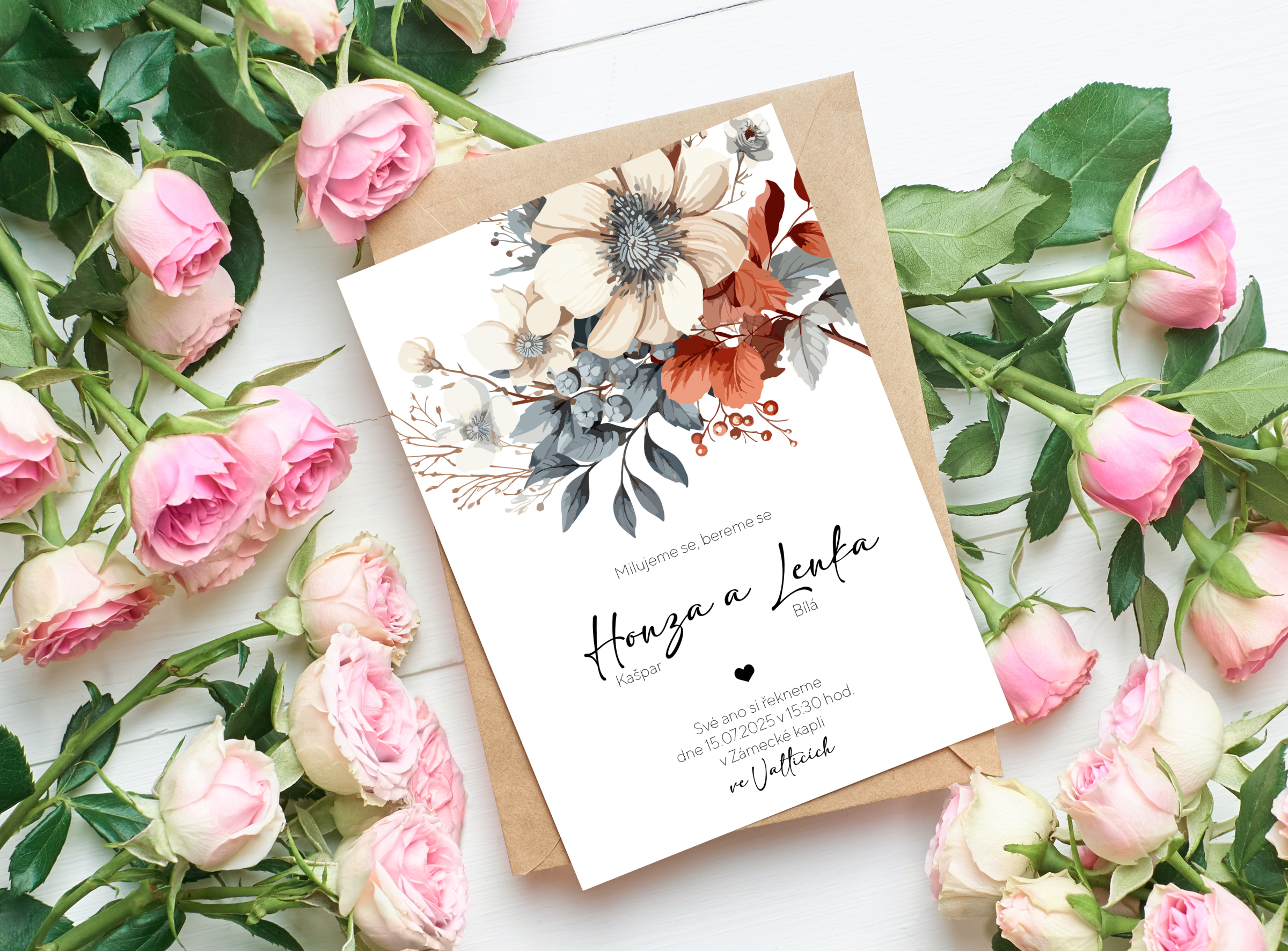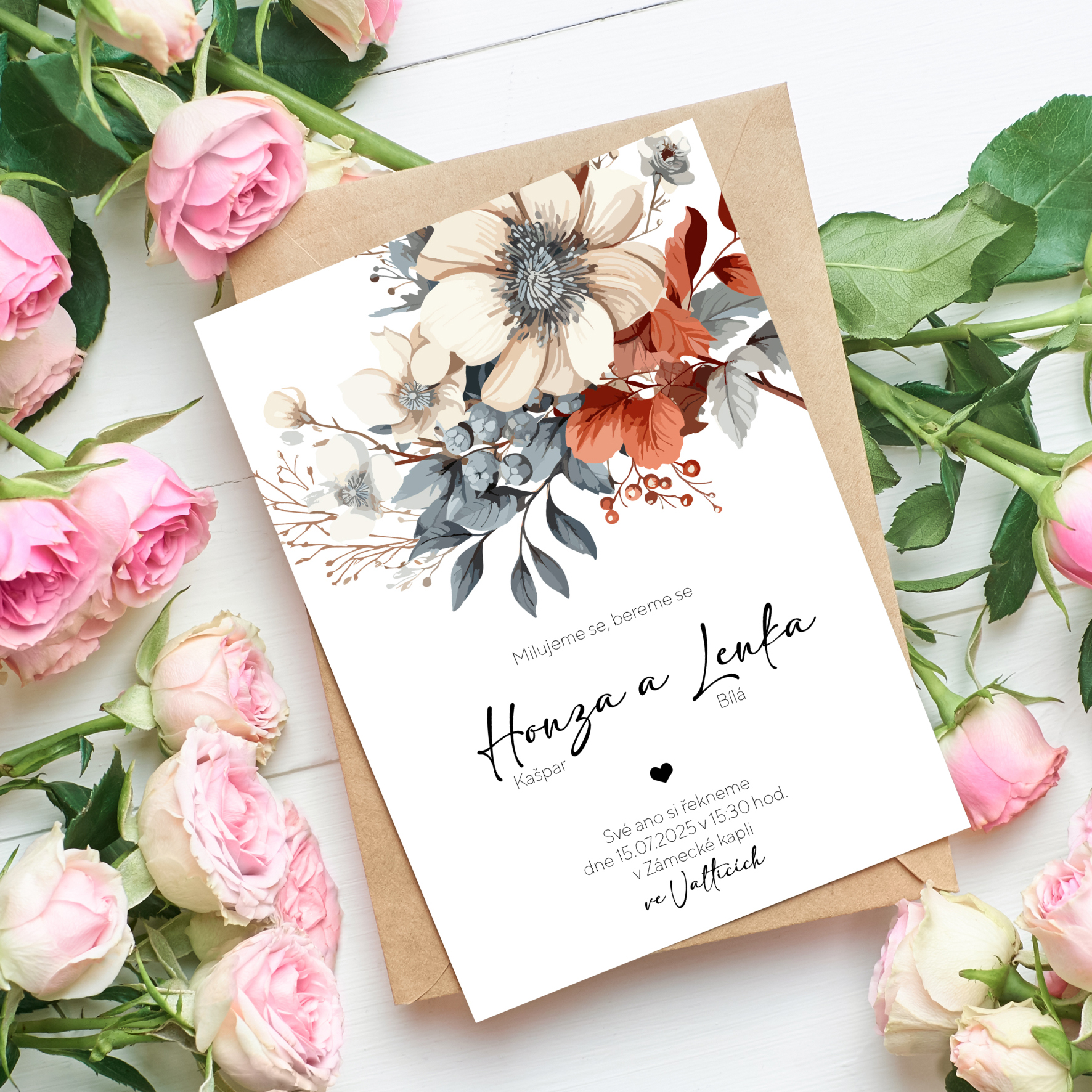 V tomhle designu vám vypracujeme všechny svatební tiskoviny.