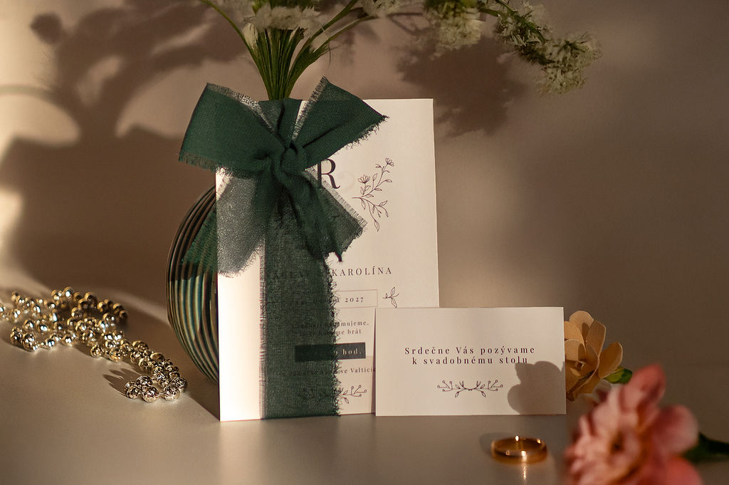 • Luxusní svatební oznámení – mašle jako výrazný detail