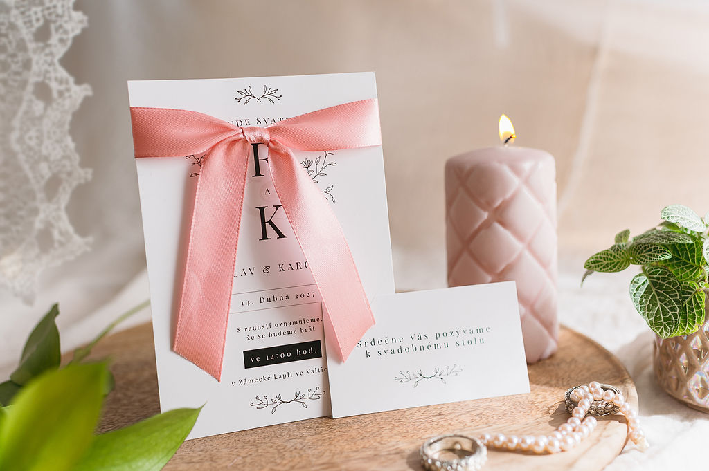 Svatební oznámení s mašlí – elegantní detail, který zaujme
