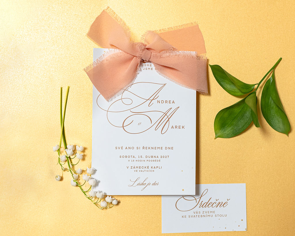 Svatební oznámení s mašlí – elegantní detail, který zaujme