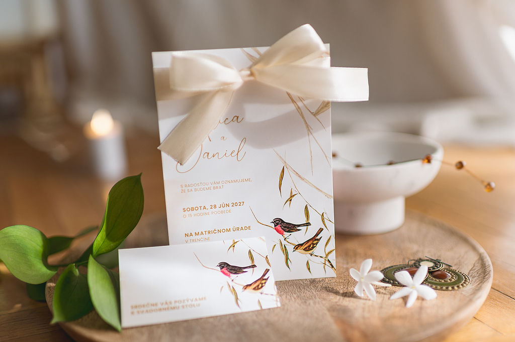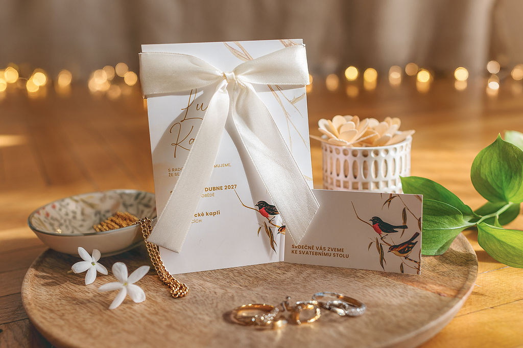 Svatební oznámení s mašlí – elegantní detail, který zaujme
