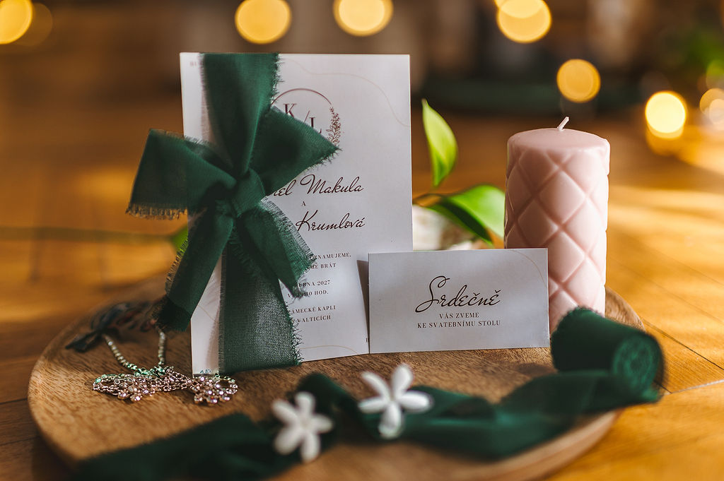 Svatební oznámení s mašlí – elegantní detail, který zaujme