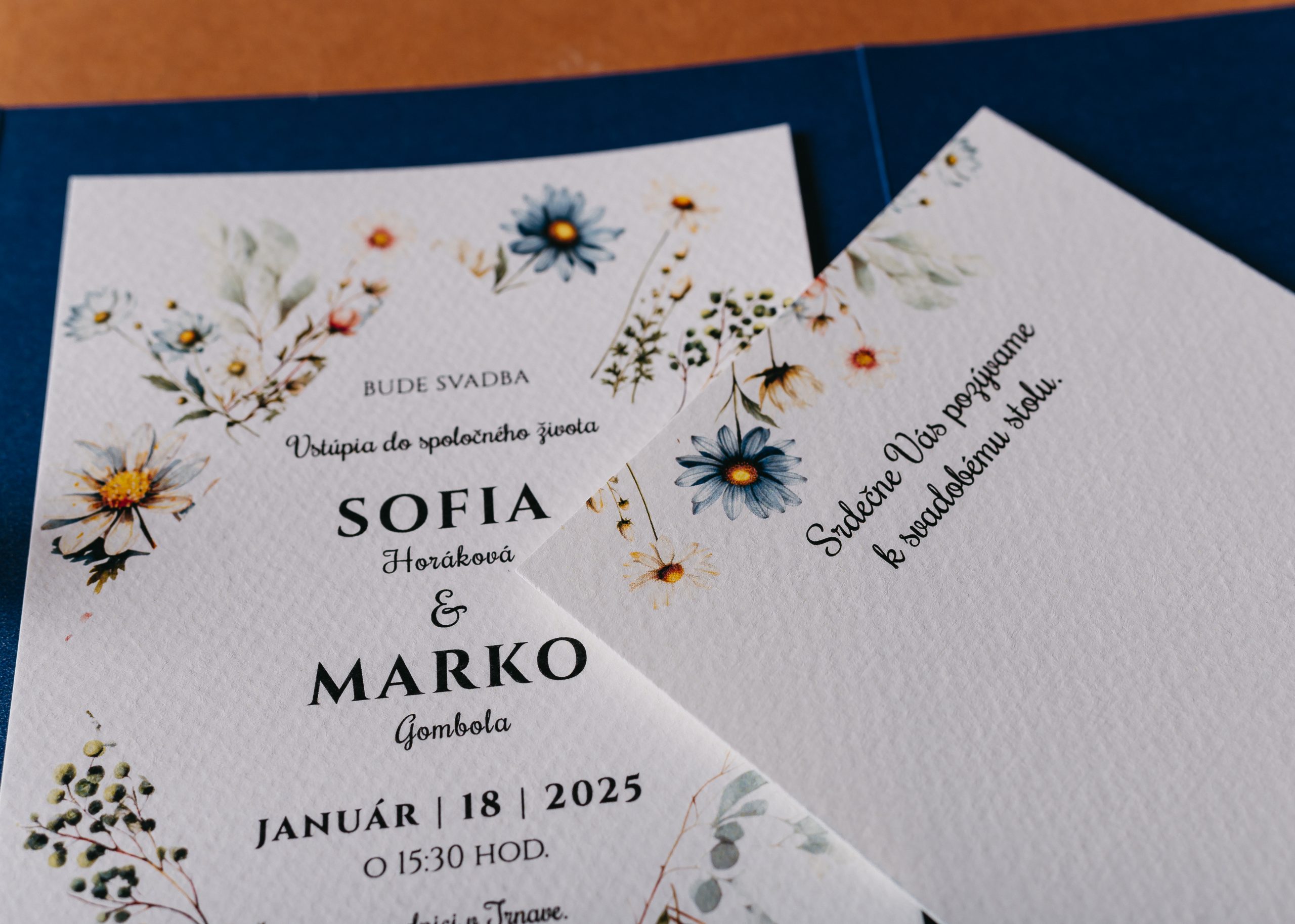 • Možnost personalizace – Každé oznámení (ne obálku) je možné upravit dle vašich představ – od barvy písma, výběr papíru, typu potisku, až po vlastní text. Přizpůsobte si oznámení přesně podle stylu vaší svatby.