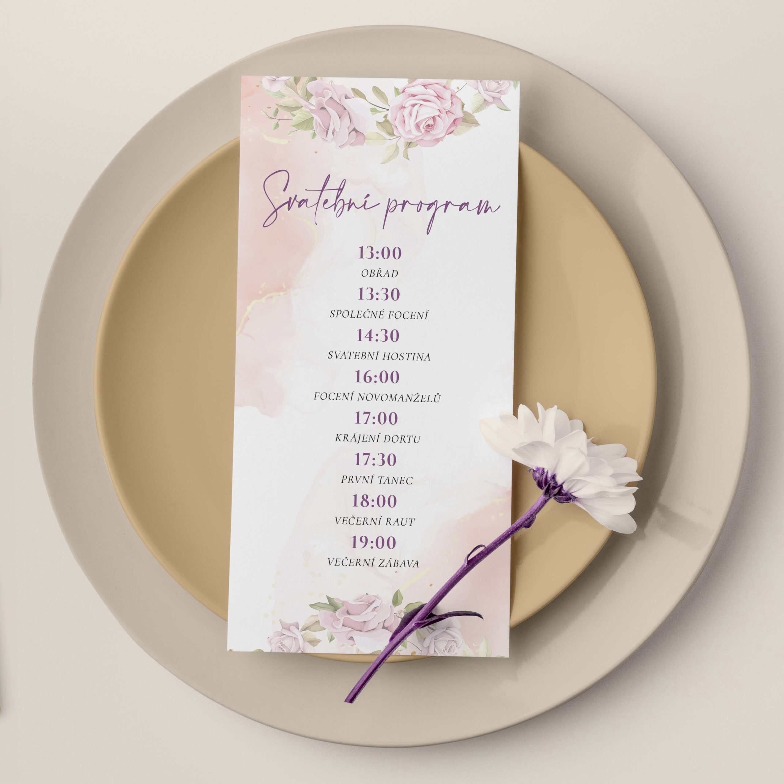 Svatební program s růžemi a akvarelem DL OTV LSO2025_0417 – tisk na formát DL