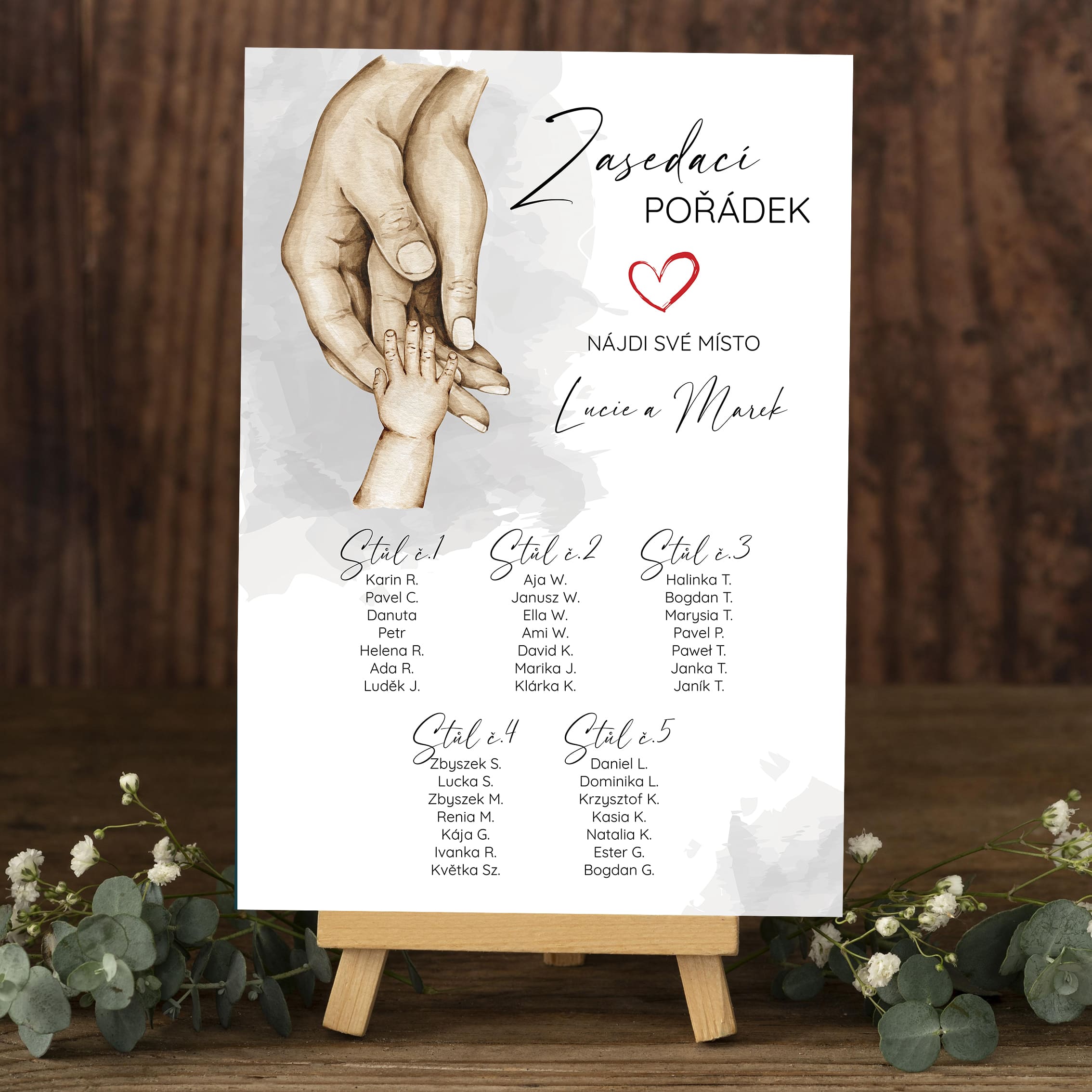 Elegantní design: Naše nabídka zahrnuje moderní a stylové motivy, které lehce zapadnou do různých svatebních témat. Můžete si vybrat z více designů nebo si přizpůsobit zasedací pořádek dle vlastního vkusu.
