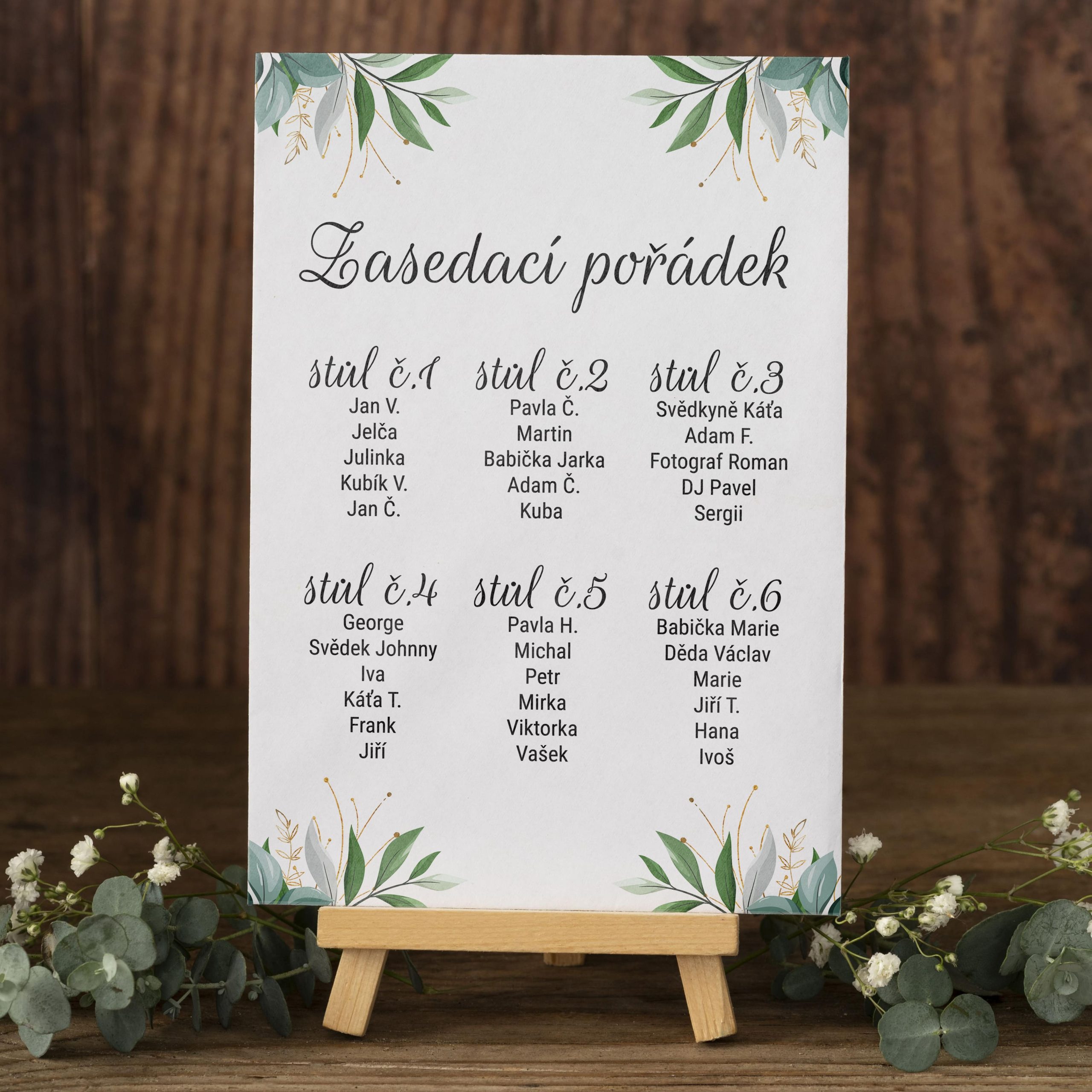 Přizpůsobení podle vašich představ: Naše služba vám umožňuje přidat vlastní detaily, jako jsou jména hostů, čísla stolů, a dokonce i speciální označení pro VIP nebo rodinu.