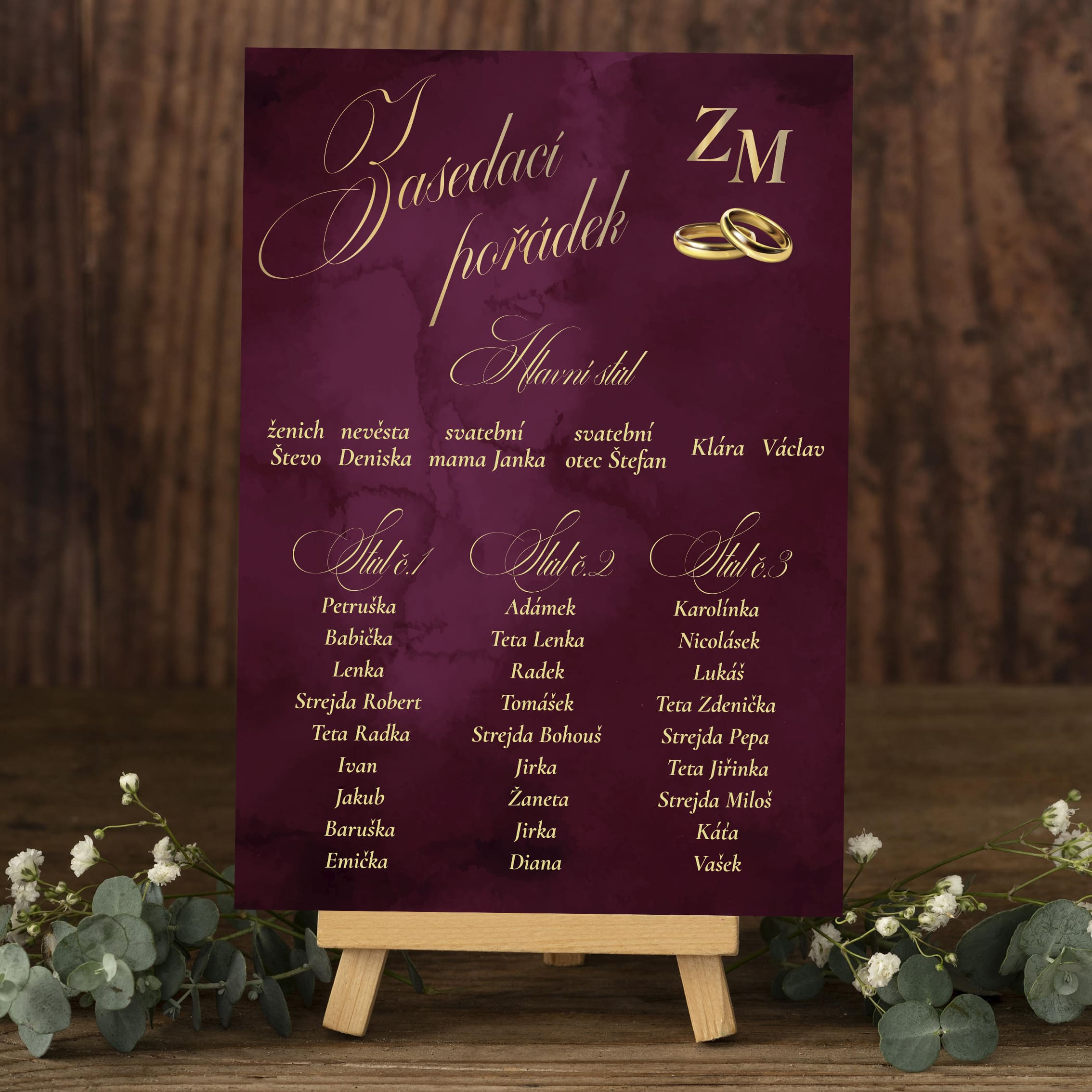 Zasedací pořádek na svatbu je nezbytným doplňkem každé svatební oslavy, který vašim hostům poskytne jasný přehled o tom, kde mají své místo. Usnadněte si organizaci a zajistěte, že všichni hosté se budou cítit vítáni a pohodlně.