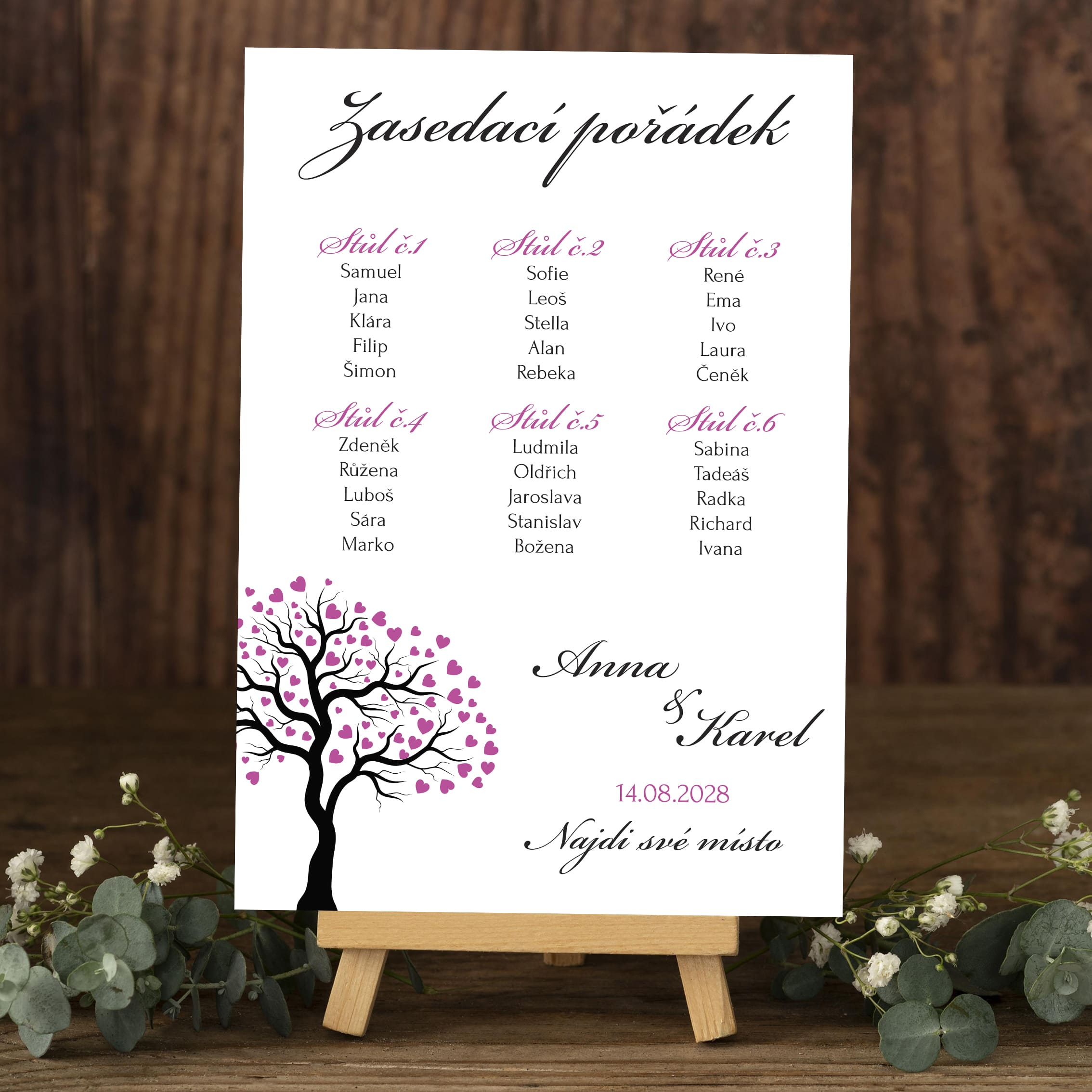 Zasedací pořádek na svatbu je nezbytným doplňkem každé svatební oslavy, který vašim hostům poskytne jasný přehled o tom, kde mají své místo. Usnadněte si organizaci a zajistěte, že všichni hosté se budou cítit vítáni a pohodlně.